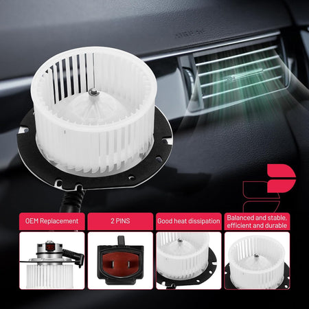 【 Blower Motor Features】:Built with high-quality materials, this blower motor is designed to withstand the rigors of daily use, offering long-lasting durability and reliable performance.Despite its powerful performance, this blower motor operates quietly, ensuring a comfortable and noise-free driving experience.