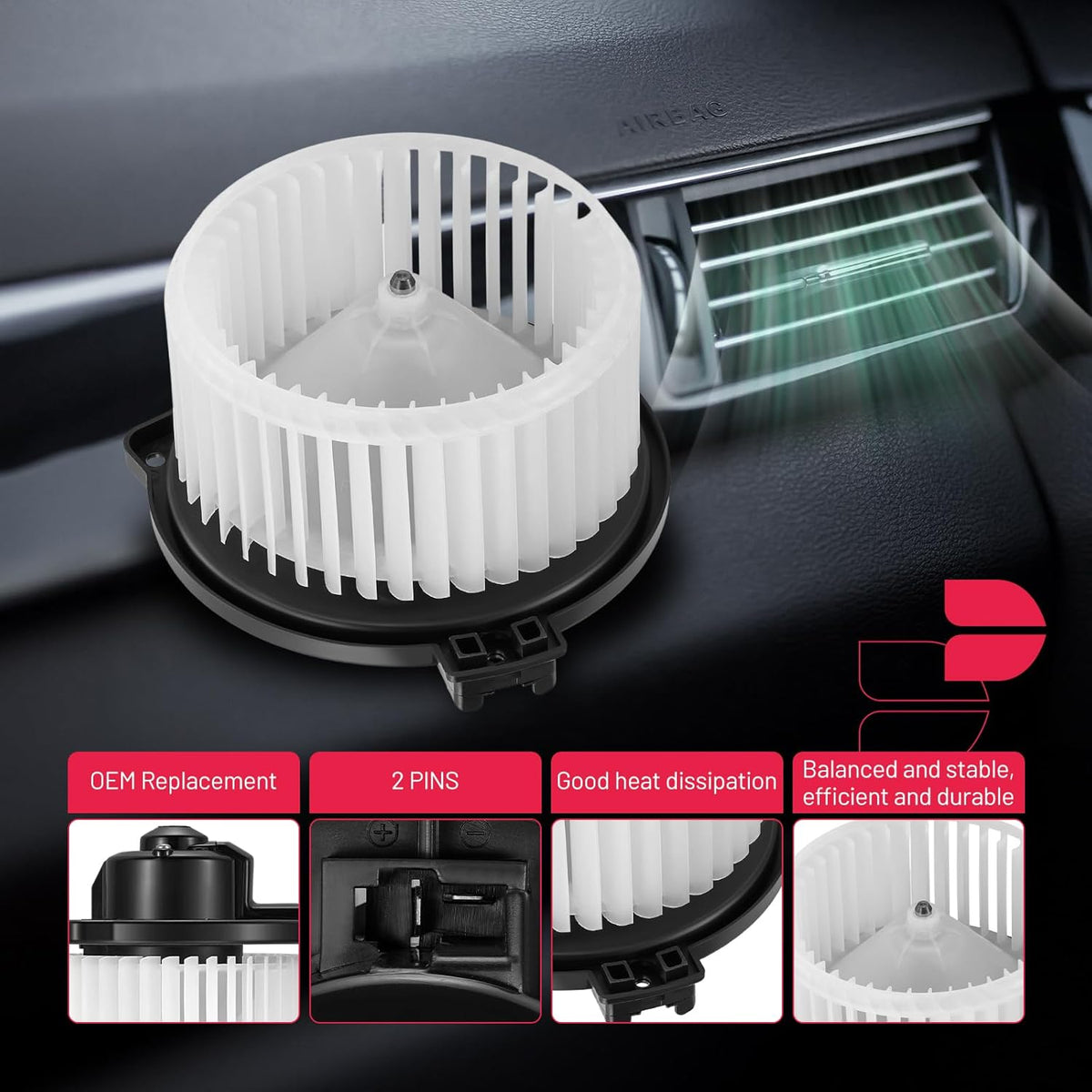 【 Blower Motor Features】:Built with high-quality materials, this blower motor is designed to withstand the rigors of daily use, offering long-lasting durability and reliable performance.Despite its powerful performance, this blower motor operates quietly, ensuring a comfortable and noise-free driving experience.