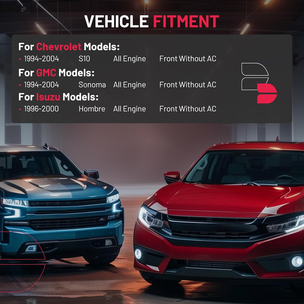 【Fitment information】:Compatible with Chevy 1994-2004 S10;Compatible with GMC 1994-2004 Sonoma;Compatible with Isuzu 1996-2000 Hombre.Please confirm the compatibility according to the year/make/model of your vehicle and the OE number of the replaceable part.
