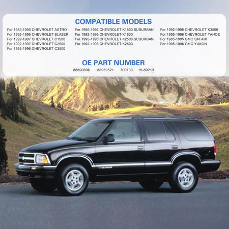 【Blower Motor Fitment】:Compatible with GMC SAFARI 1985-1995,YUKON 1995-1996; Compatible with Chevy ASTRO 1985-1995,BLAZER 1995-1996,C1500/C2500/C3500/K1500/K2500/K3500 1992-1996,K1500/K2500 SUBURBAN 1995-1996.Please see pictures for complete model information.