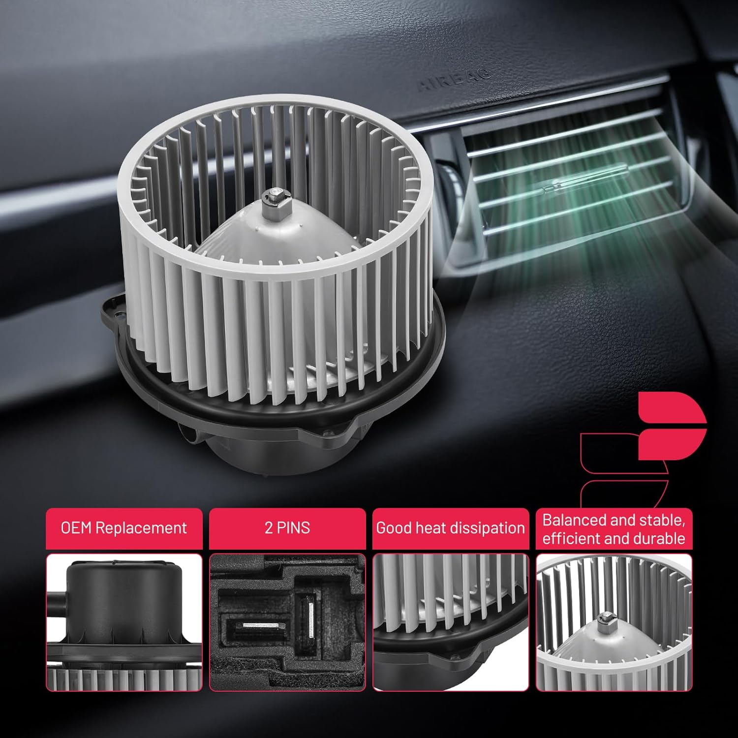 【 Blower Motor Features】:Built with high-quality materials, this blower motor is designed to withstand the rigors of daily use, offering long-lasting durability and reliable performance.Despite its powerful performance, this blower motor operates quietly, ensuring a comfortable and noise-free driving experience.