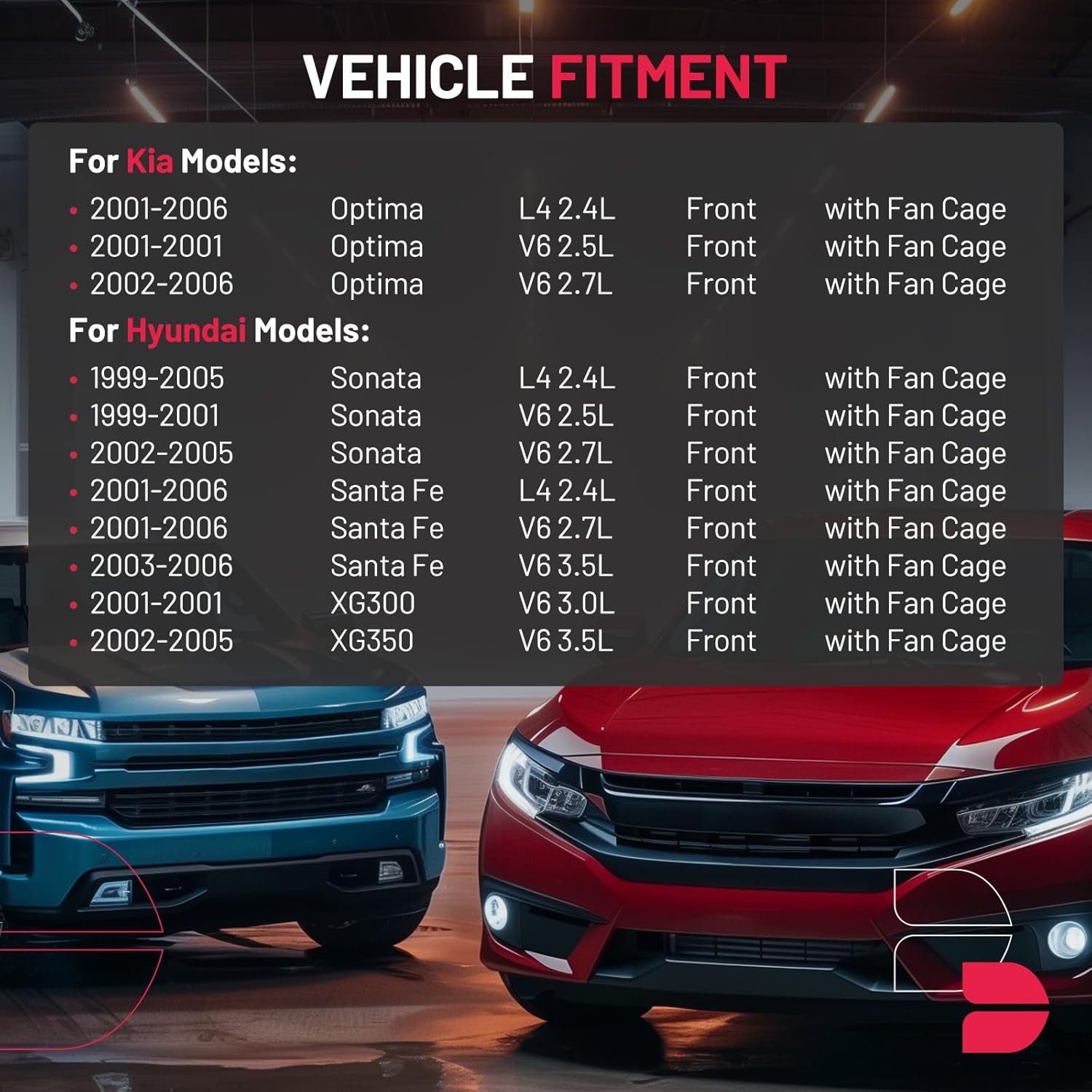 【Fitment information】:Compatible with Kia 2001-2006 Optima; Compatible with Hyundai 1999-2005 Sonata, 2001-2006 Santa Fe, 2001-2001 XG300, 2002-2005 XG350.Please confirm the compatibility according to the year/make/model of your vehicle and the OE number of the replaceable part.
