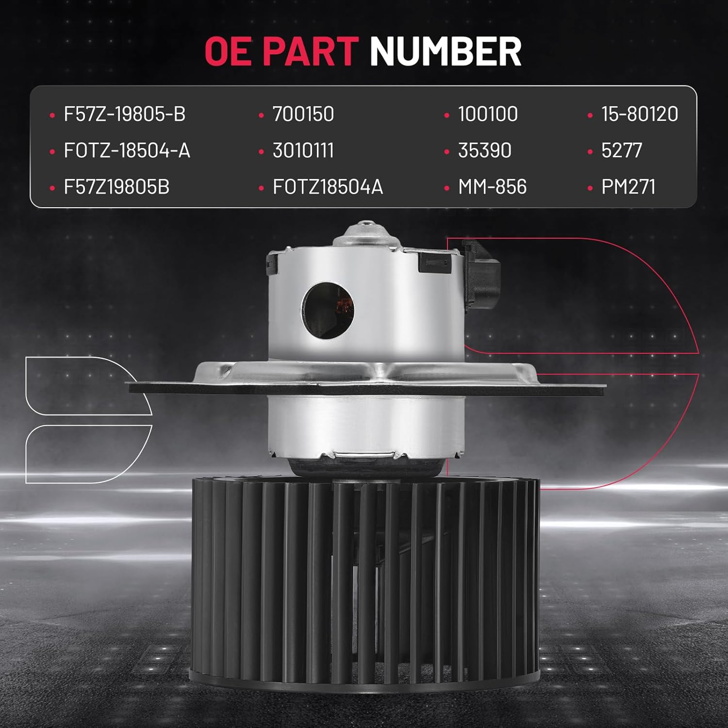 【Compatible Part Numbers】:Replacement for Blower Motor OE Number: F57Z-19805-B FOTZ-18504-A F57Z19805B FOTZ18504A 700150 100100 15-80120 3010111 35390 5277 MM-856 PM271.