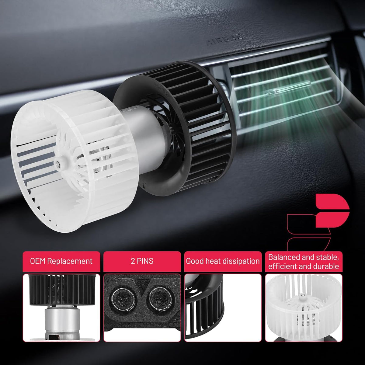 【 Blower Motor Features】:Built with high-quality materials, this blower motor is designed to withstand the rigors of daily use, offering long-lasting durability and reliable performance.Despite its powerful performance, this blower motor operates quietly, ensuring a comfortable and noise-free driving experience.