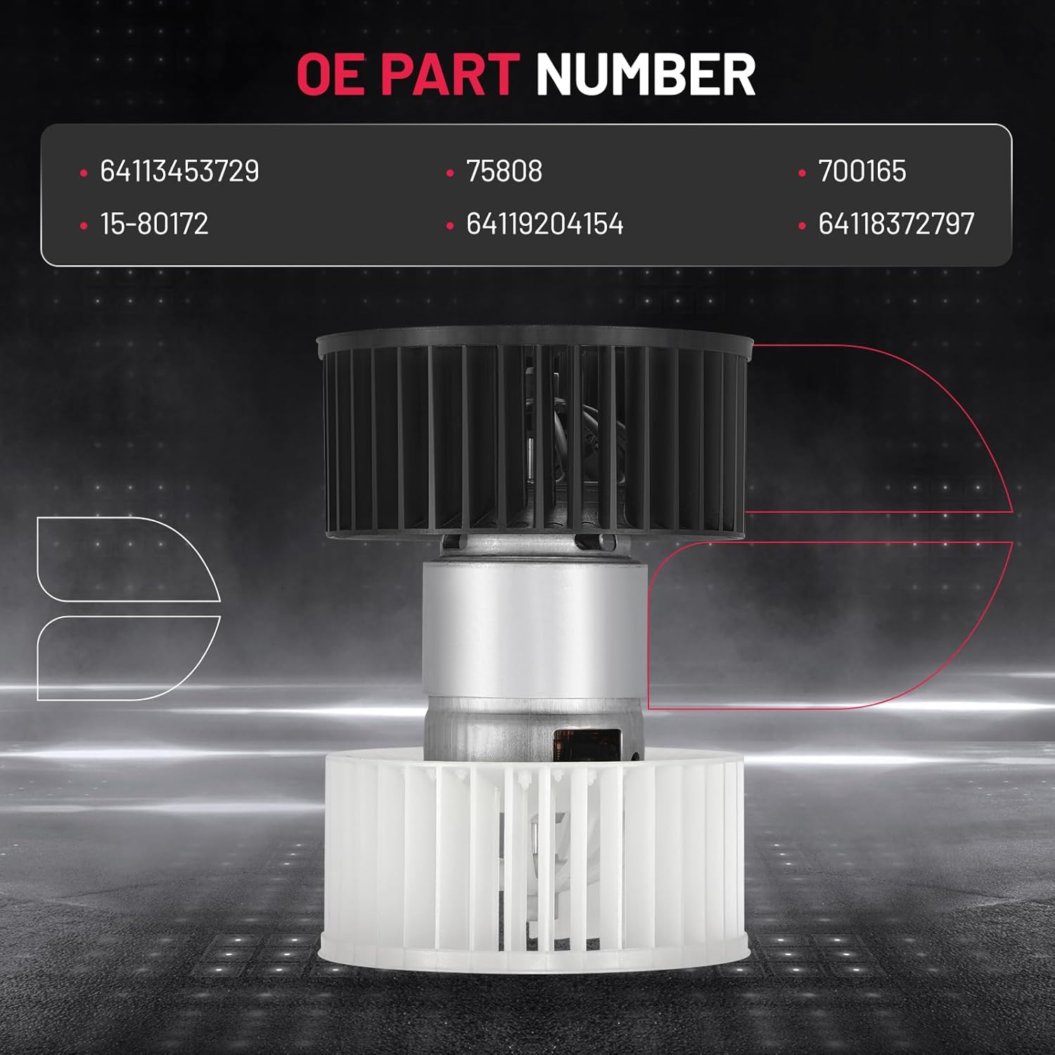 【Compatible Part Numbers】:Replacement for Blower Motor OE Number: 64113453729 75808 700165 15-80172 64119204154 64118372797.