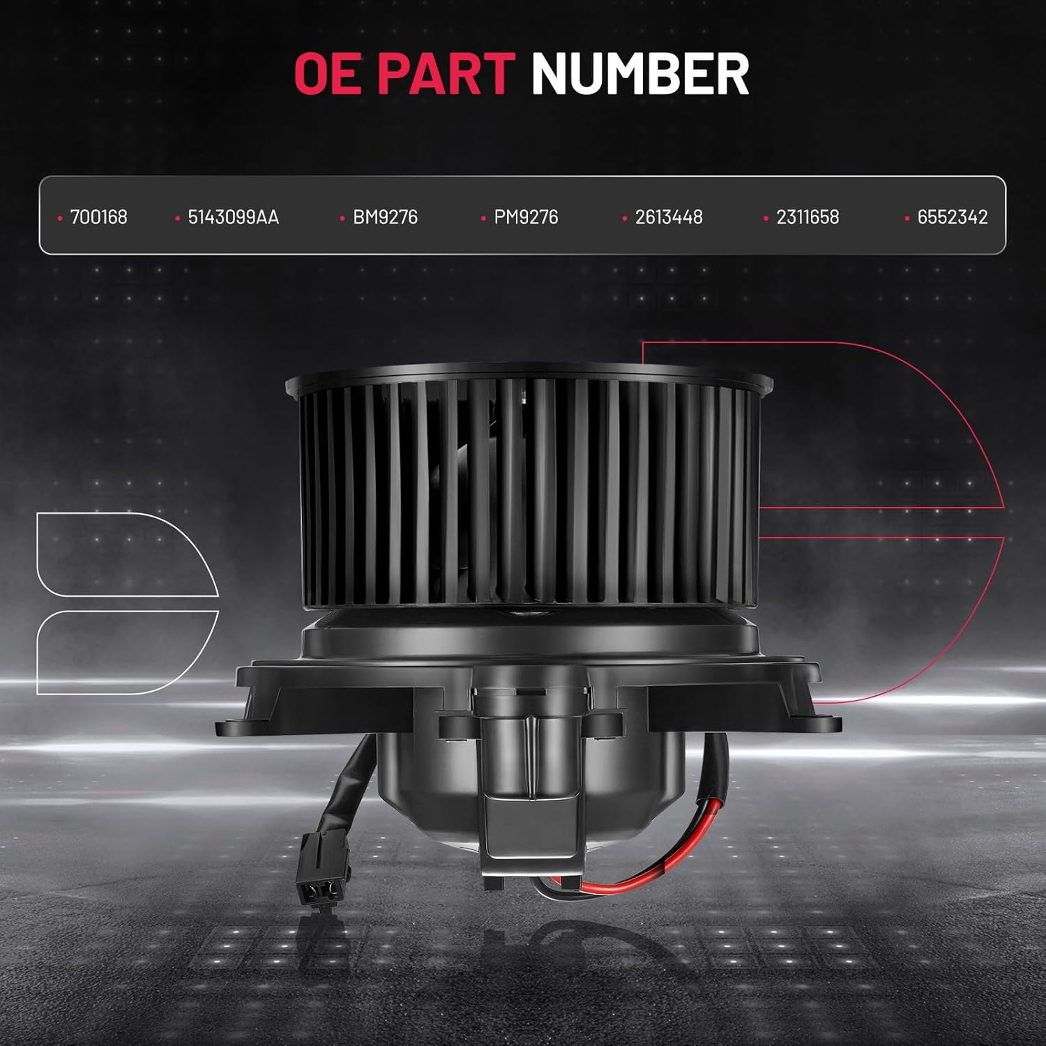 【Compatible Part Numbers】:Replacement for Blower Motor OE Number:700168 5143099AA BM9276 PM9276 2613448 2311658 6552342.