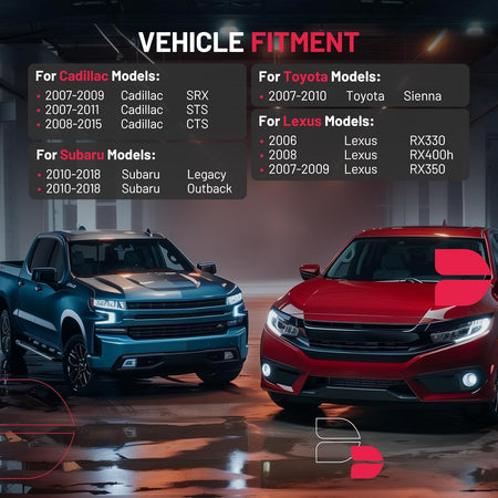 【Fitment information】:Compatible with Cadillac 2008-2015 CTS, 2007-2009 SRX, 2007-2011 STS; Compatible with Lexus 2006 RX330, 2007-2009 RX350, 2008 RX400h; Compatible with Subaru 2010-2018 Legacy, 2010-2018 Outback; Compatible with Toyota 2007-2010 Sienna.Please confirm the compatibility according to the year/make/model of your vehicle and the OE number of the replaceable part.