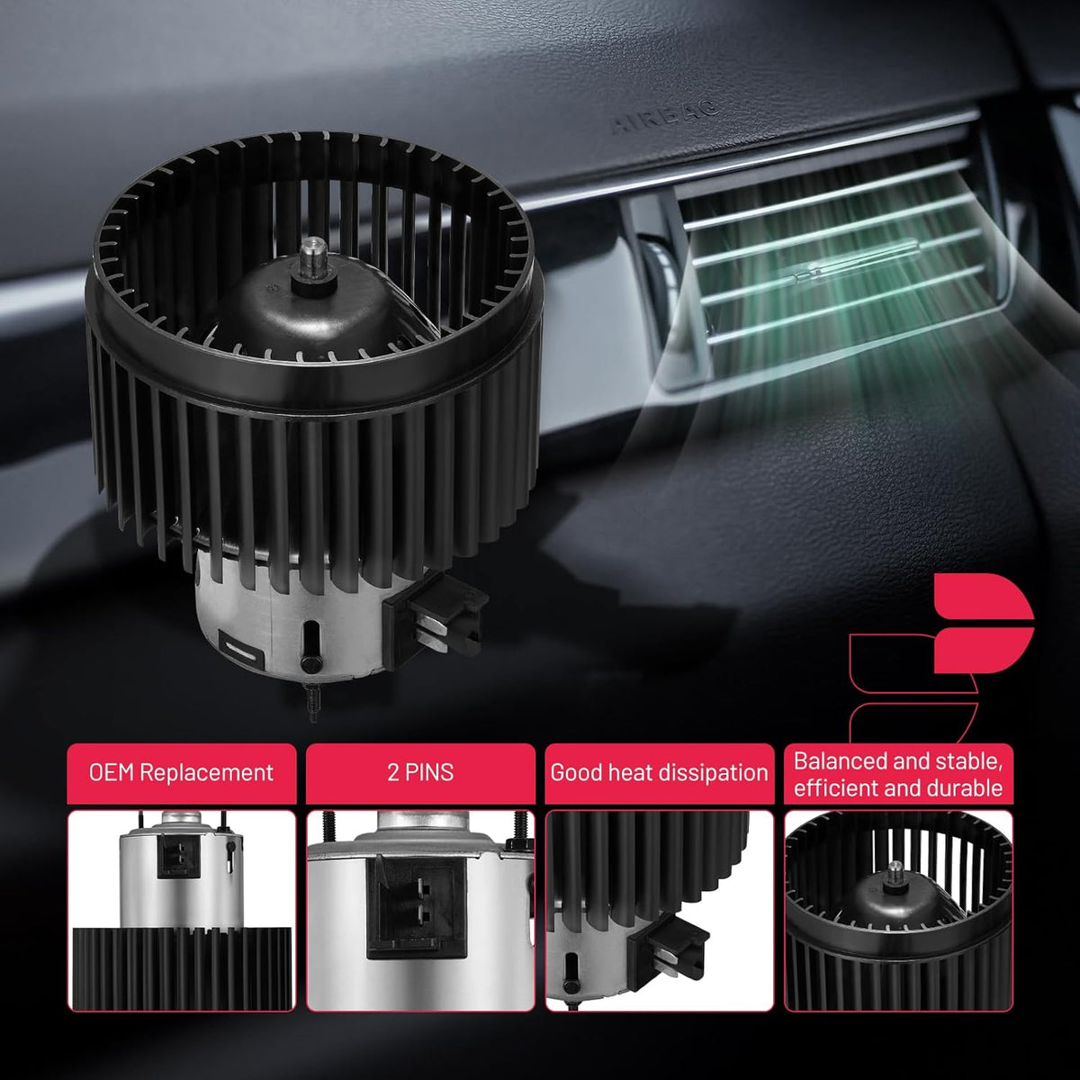 【 Blower Motor Features】:Built with high-quality materials, this blower motor is designed to withstand the rigors of daily use, offering long-lasting durability and reliable performance.Despite its powerful performance, this blower motor operates quietly, ensuring a comfortable and noise-free driving experience.