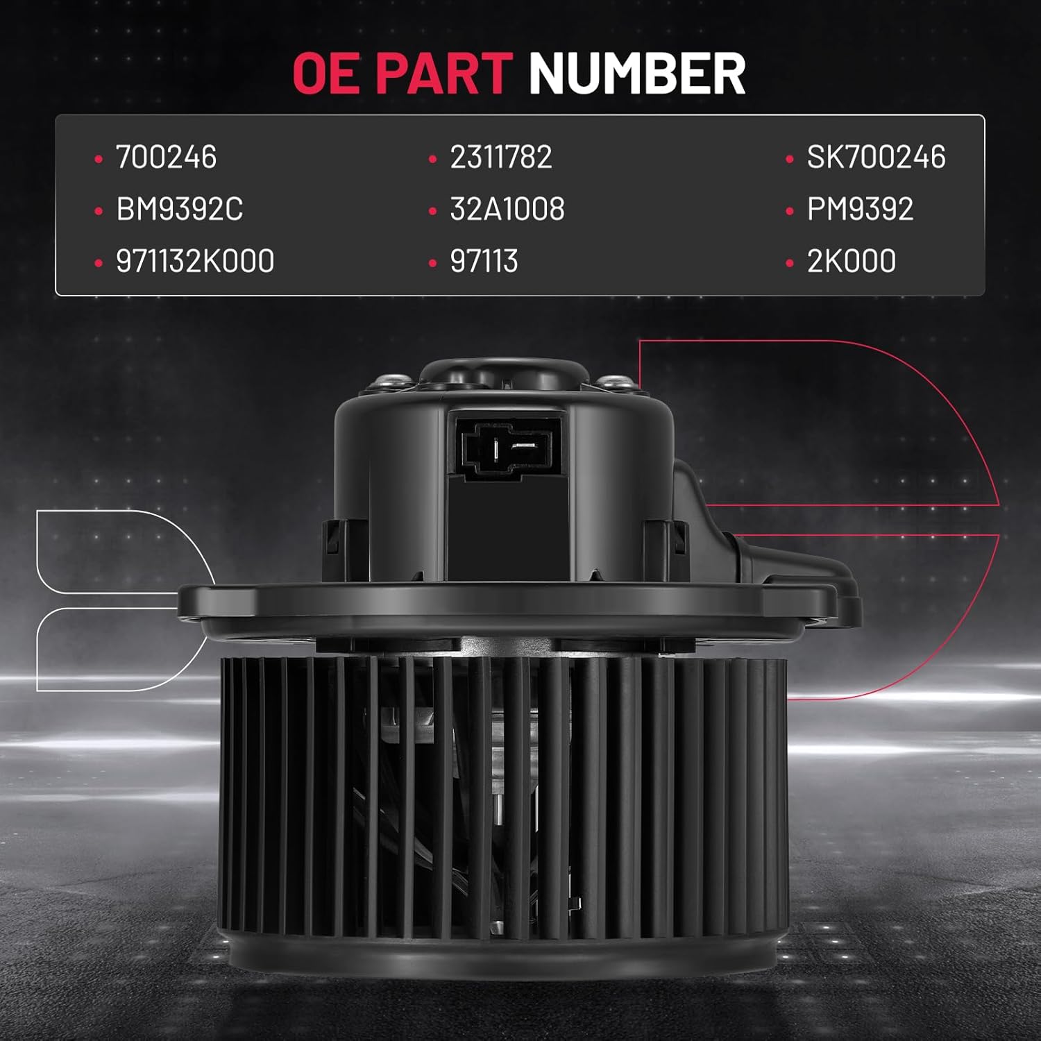【Compatible Part Numbers】:Replacement for Blower Motor OE Number:700246 2311782 SK700246 BM9392C 32A1008 PM9392 971132K000 97113 2K000.