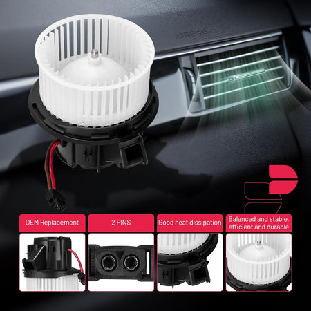 【 Blower Motor Features】:Built with high-quality materials, this blower motor is designed to withstand the rigors of daily use, offering long-lasting durability and reliable performance.Despite its powerful performance, this blower motor operates quietly, ensuring a comfortable and noise-free driving experience.