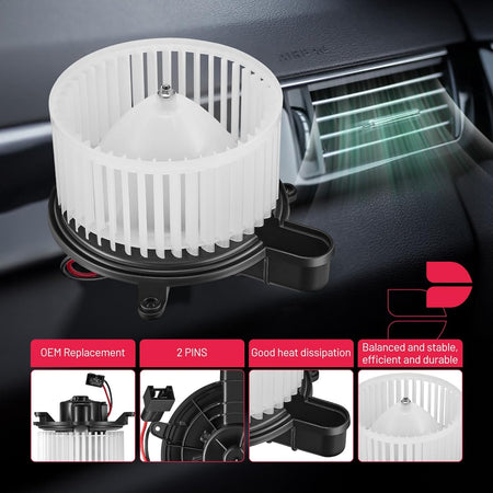 【Blower Motor Features】:Built with high-quality materials, this blower motor is designed to withstand the rigors of daily use, offering long-lasting durability and reliable performance.Despite its powerful performance, this blower motor operates quietly, ensuring a comfortable and noise-free driving experience.
