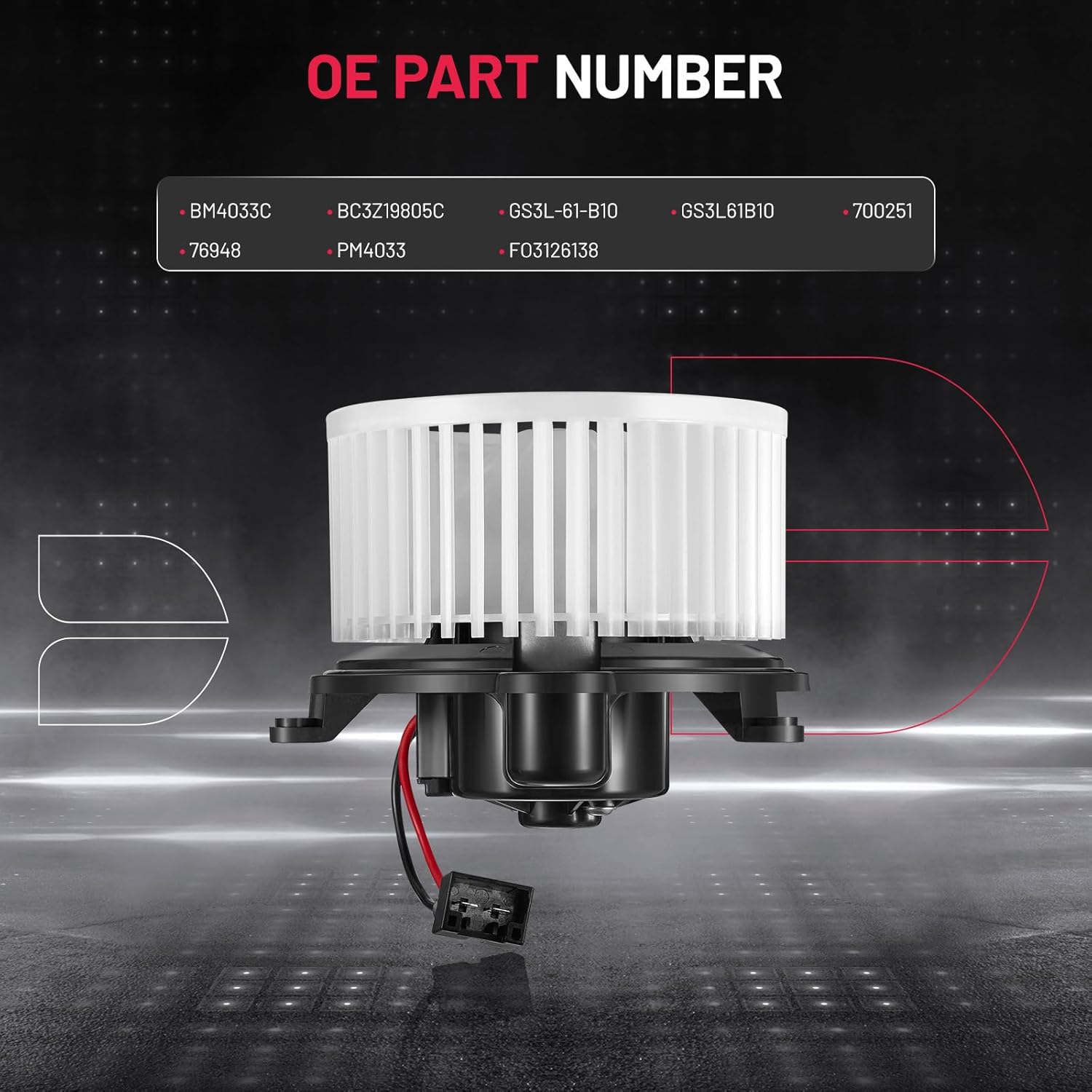【Compatible Part Numbers】:Replacement for Blower Motor OE Number:BM4033C BC3Z19805C GS3L-61-B10 GS3L61B10 700251 76948 PM4033 FO3126138.