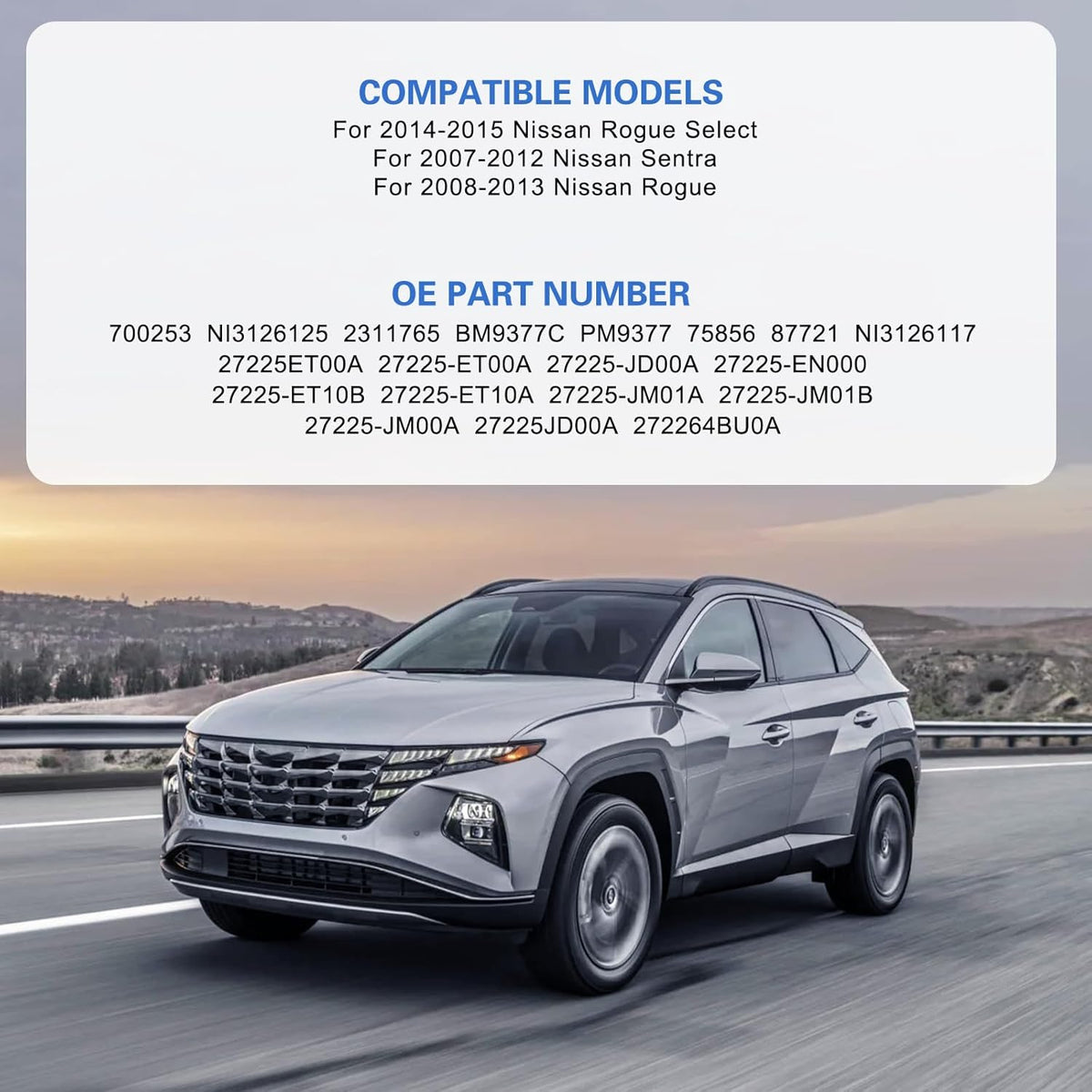 【Fitment information】:Compatible with 2008-2013 Nissan Rogue | 2014-2015 Nissan Rogue Select | 2007-2012 Nissan Sentra | 2007-2012 Nissan Tsuru. Please confirm the compatibility according to the year/make/model of your vehicle and the OE number of the replaceable part.