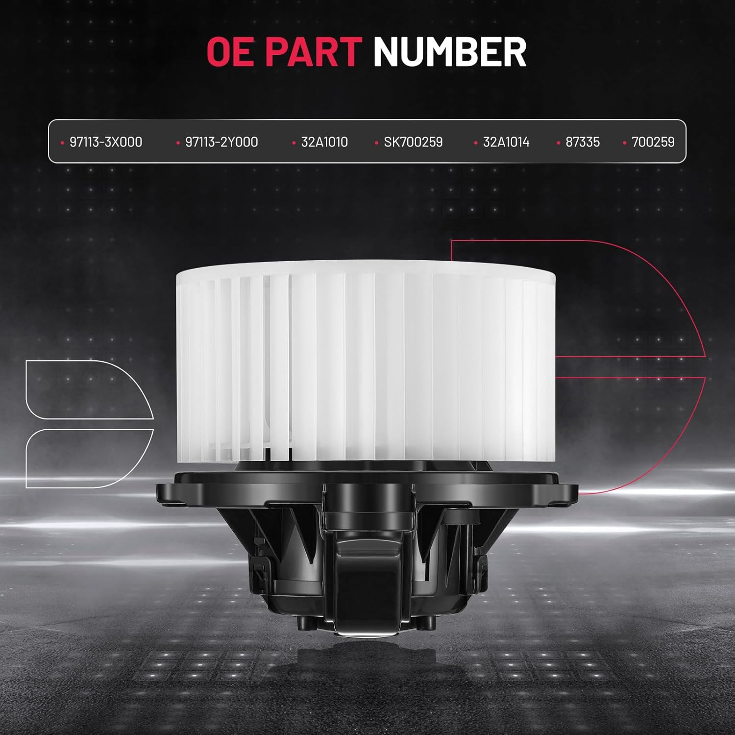 【Compatible Part Numbers】:Replacement for Blower Motor OE Number:97113-3X000 97113-2Y000 32A1010 SK700259 32A1014 87335 700259.