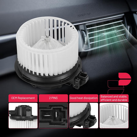 【 Blower Motor Features】:Built with high-quality materials, this blower motor is designed to withstand the rigors of daily use, offering long-lasting durability and reliable performance.Despite its powerful performance, this blower motor operates quietly, ensuring a comfortable and noise-free driving experience.