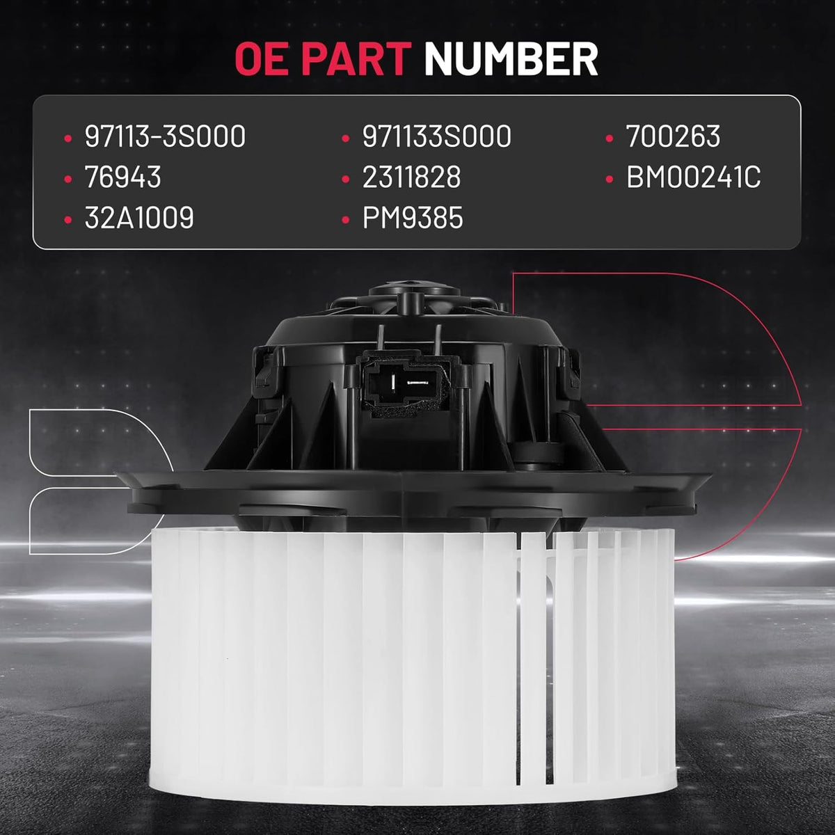 【Compatible Part Numbers】:Replacement for Blower Motor OE Number:97113-3S000 971133S000 700263 76943 2311828 BM00241C 32A1009 PM9385.