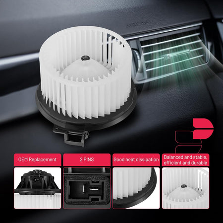 【 Blower Motor Features】:Built with high-quality materials, this blower motor is designed to withstand the rigors of daily use, offering long-lasting durability and reliable performance.Despite its powerful performance, this blower motor operates quietly, ensuring a comfortable and noise-free driving experience.