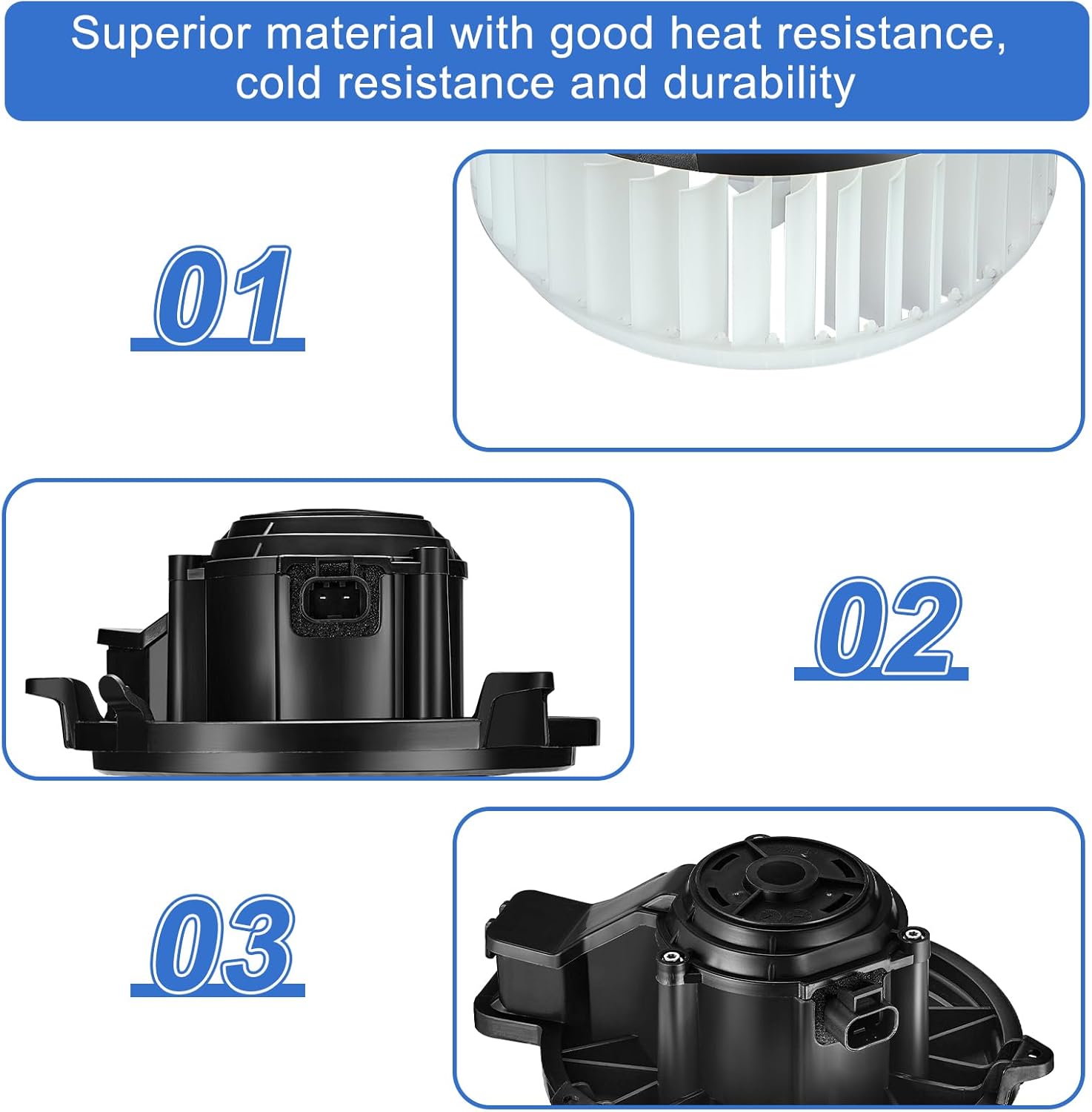 【Durable and Quiet】: Built with high-quality materials, this blower motor is designed to withstand the rigors of daily use, offering long-lasting durability and reliable performance.Despite its powerful performance, this blower motor operates quietly, ensuring a comfortable and noise-free driving experience.