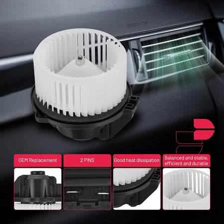 【 Blower Motor Features】:Built with high-quality materials, this blower motor is designed to withstand the rigors of daily use, offering long-lasting durability and reliable performance.Despite its powerful performance, this blower motor operates quietly, ensuring a comfortable and noise-free driving experience.