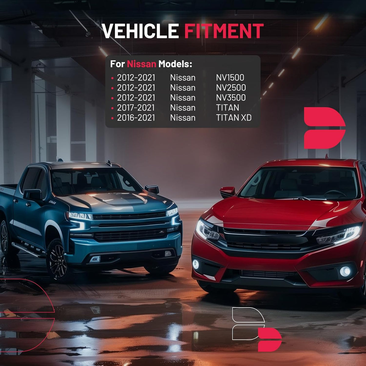 【Fitment information】:Compatible with Nissan 2012-2021 NV1500, 2012-2021 NV2500, 2012-2021 NV3500, 2017-2021 TITAN, 2016-2021 TITAN XD.Please confirm the compatibility according to the year/make/model of your vehicle and the OE number of the replaceable part.