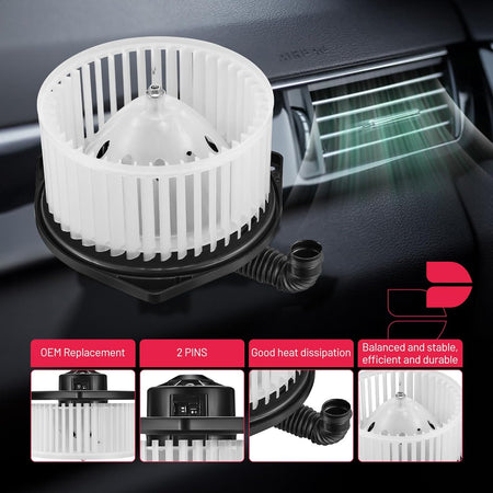 【Blower Motor Features】:Built with high-quality materials, this blower motor is designed to withstand the rigors of daily use, offering long-lasting durability and reliable performance.Despite its powerful performance, this blower motor operates quietly, ensuring a comfortable and noise-free driving experience.