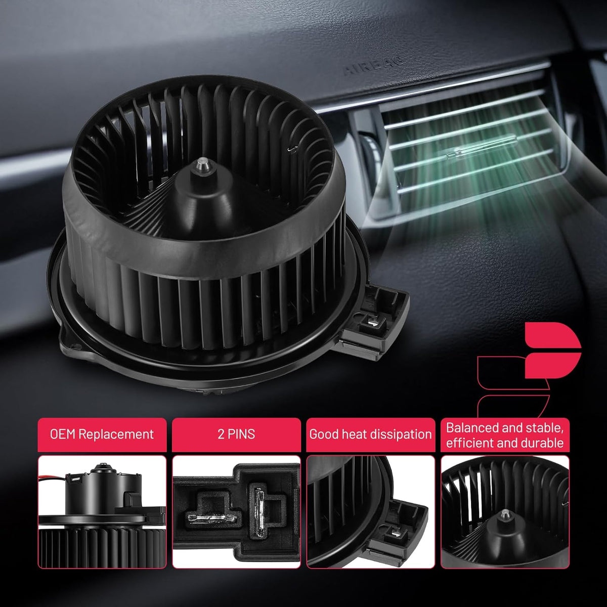 【 Blower Motor Features】:Built with high-quality materials, this blower motor is designed to withstand the rigors of daily use, offering long-lasting durability and reliable performance.Despite its powerful performance, this blower motor operates quietly, ensuring a comfortable and noise-free driving experience.