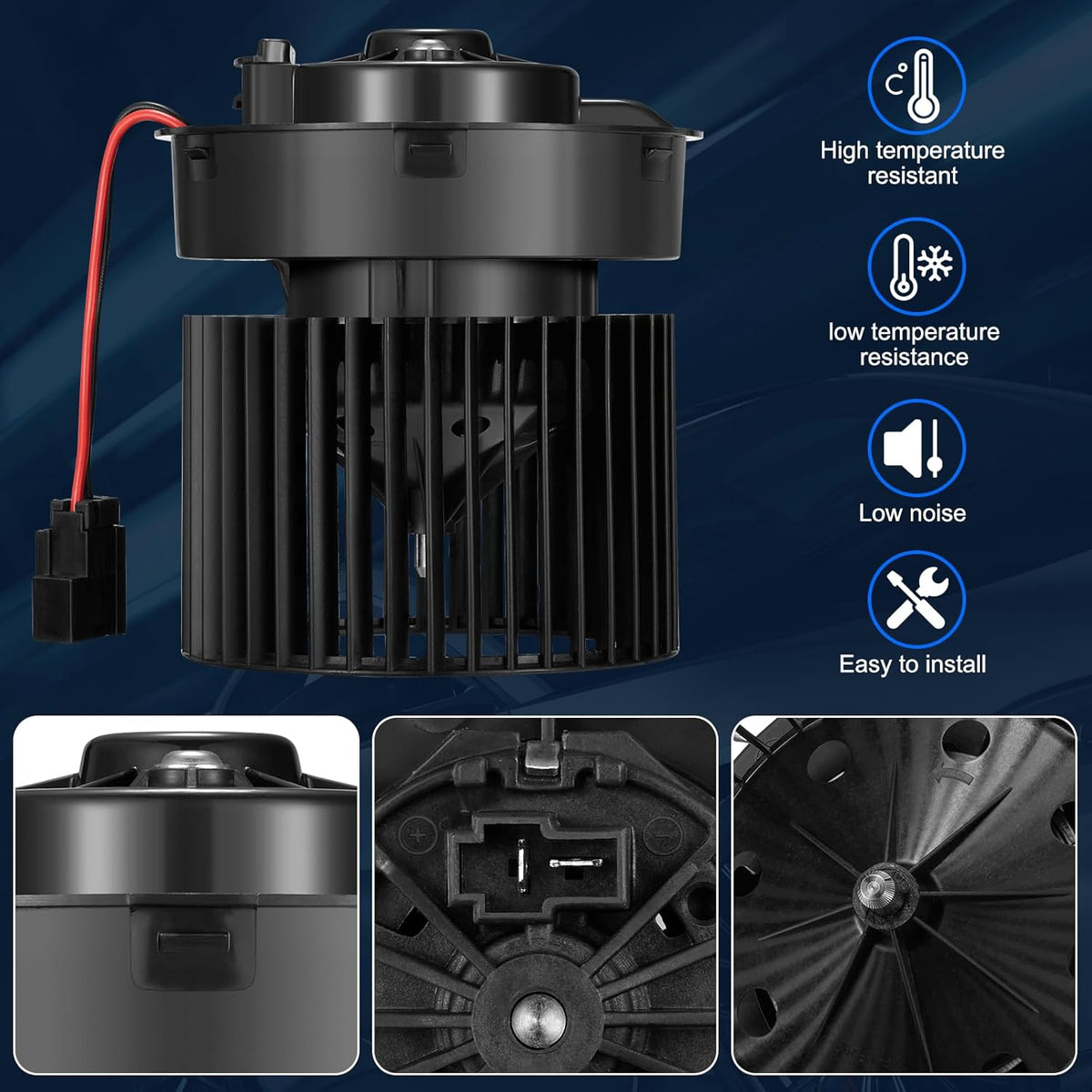 【 Blower Motor Features】:Built with high-quality materials, this blower motor is designed to withstand the rigors of daily use, offering long-lasting durability and reliable performance.Despite its powerful performance, this blower motor operates quietly, ensuring a comfortable and noise-free driving experience.