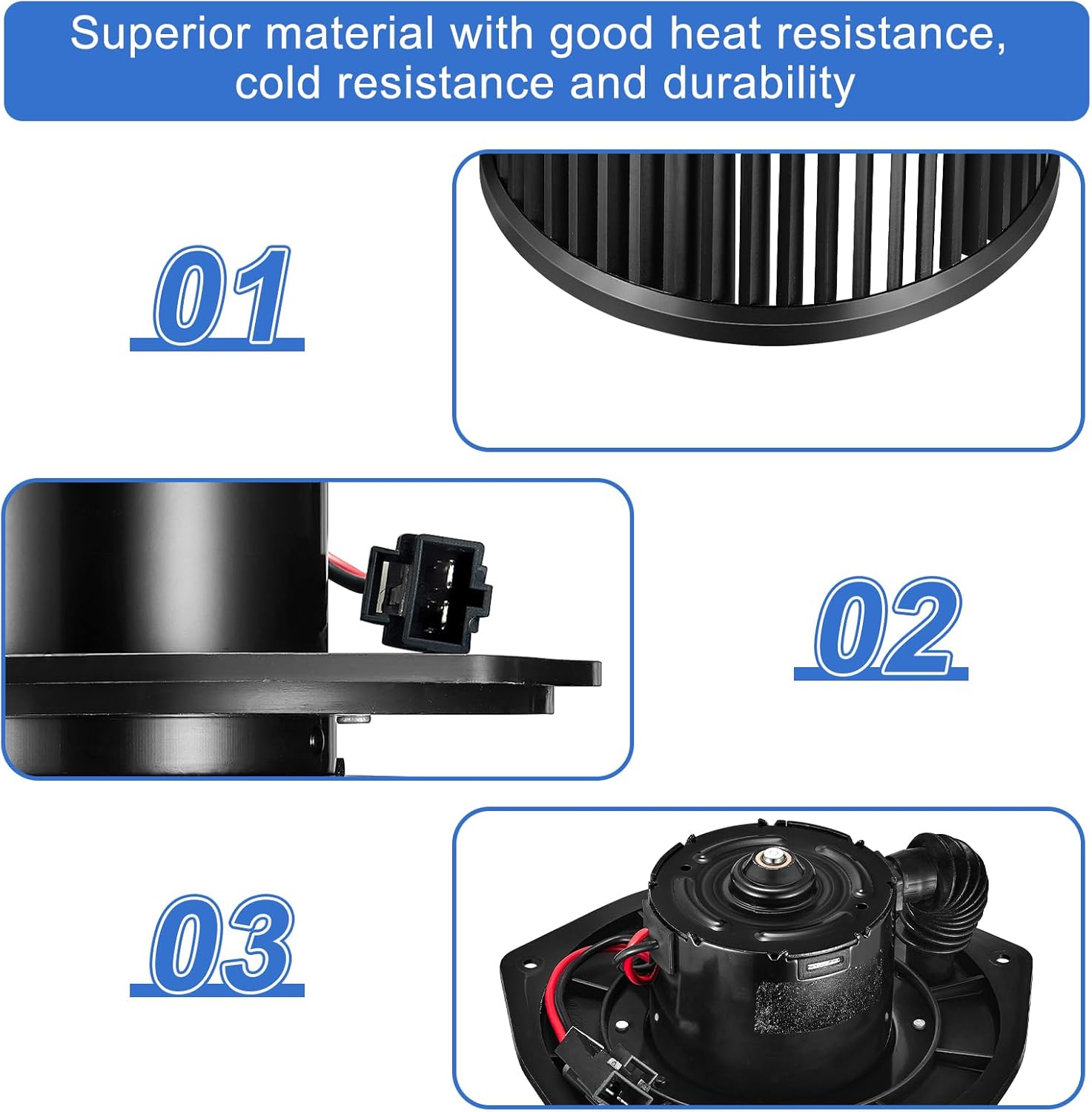 【Durable and Quiet】: Built with high-quality materials, this blower motor is designed to withstand the rigors of daily use, offering long-lasting durability and reliable performance.Despite its powerful performance, this blower motor operates quietly, ensuring a comfortable and noise-free driving experience.