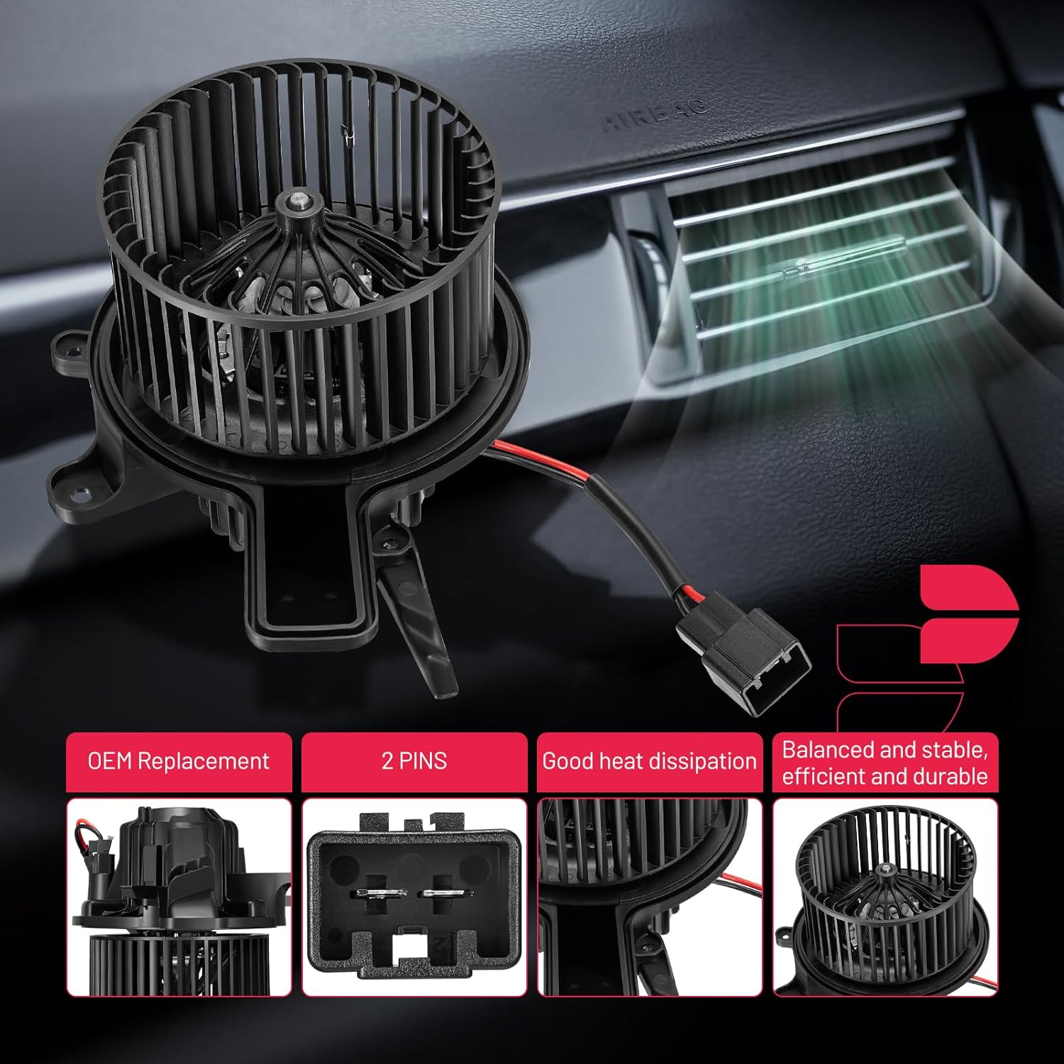 【Buy with Confidence】: All AC blower motors are performance tested by a professional laboratory,OE standard performance and durability,100% new and high quality auto parts,easy to install.