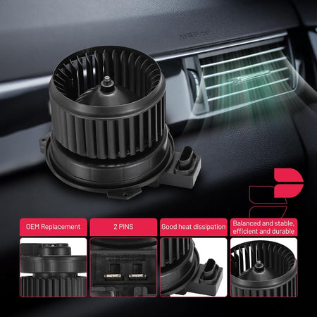 【 Blower Motor Features】:Built with high-quality materials, this blower motor is designed to withstand the rigors of daily use, offering long-lasting durability and reliable performance.Despite its powerful performance, this blower motor operates quietly, ensuring a comfortable and noise-free driving experience.