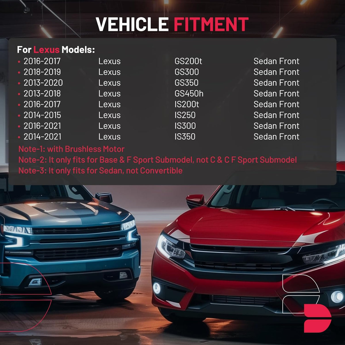 【Fitment information】:Compatible with Lexus 2016-2017 GS200t, 2018-2019 GS300, 2013-2020 GS350, 2013-2018 GS450h, 2016-2017 IS200t, 2014-2015 IS250, 2016-2021 IS300, 2014-2021 IS350.Please confirm the compatibility according to the year/make/model of your vehicle and the OE number of the replaceable part.
