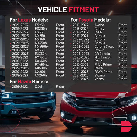 【Fitment information】:Compatible with Lexus ES250 ES300h ES350 NX250 NX350 NX350h NX450h+ RX350 RX350h RX350L RX450h RX450hL RX500h UX200 UX250h; Compatible with Mazda CX-9; Compatible with Toyota Avalon Camry C-HR Corolla Corolla Cross Crown GR Corolla Highlander Prius Prius Prime RAV4 RAV4 Prime Sienna Venza.Please confirm the compatibility according to the year/make/model of your vehicle and the OE number of the replaceable part.