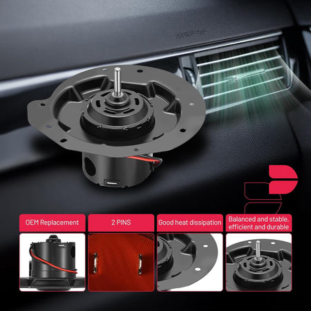【 Blower Motor Features】:Built with high-quality materials, this blower motor is designed to withstand the rigors of daily use, offering long-lasting durability and reliable performance.Despite its powerful performance, this blower motor operates quietly, ensuring a comfortable and noise-free driving experience.