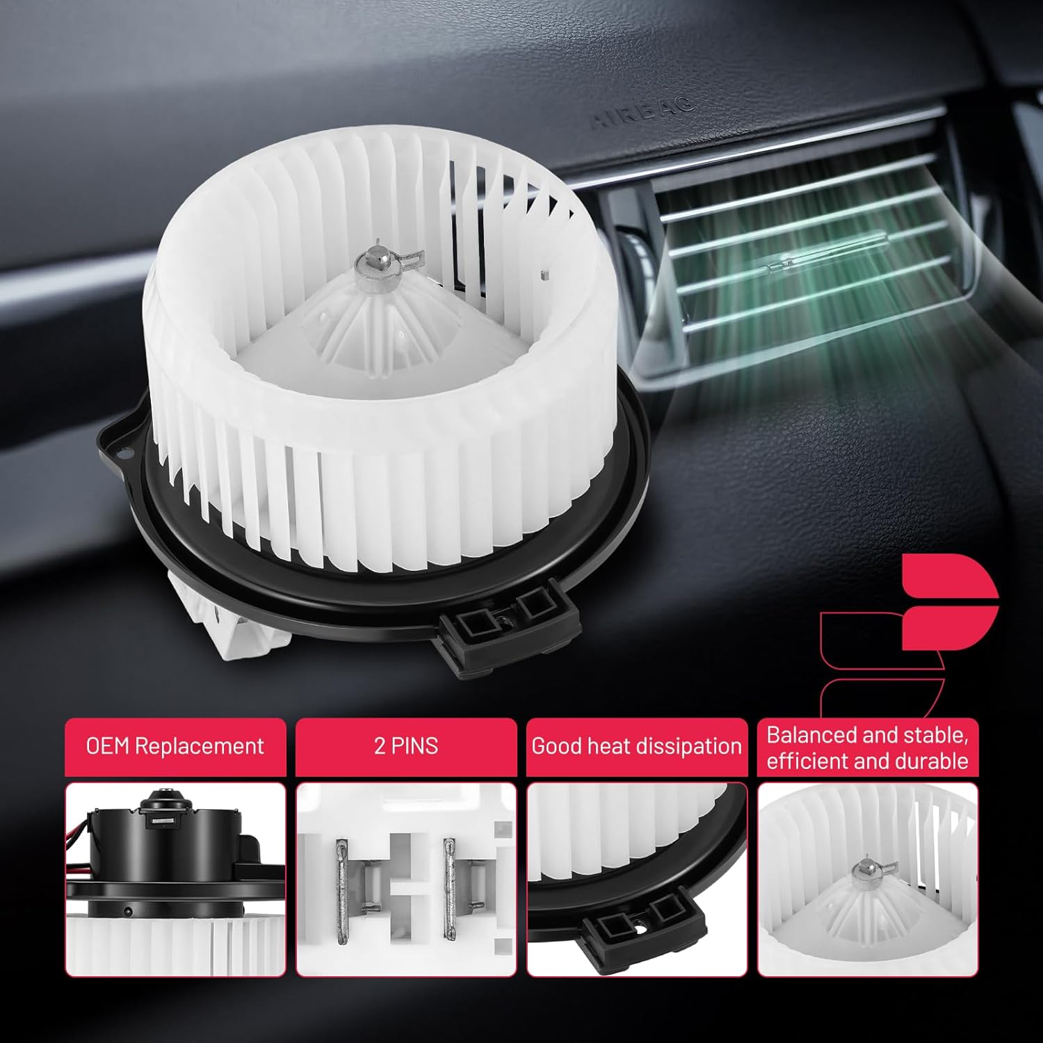【 Blower Motor Features】:Built with high-quality materials, this blower motor is designed to withstand the rigors of daily use, offering long-lasting durability and reliable performance.Despite its powerful performance, this blower motor operates quietly, ensuring a comfortable and noise-free driving experience.