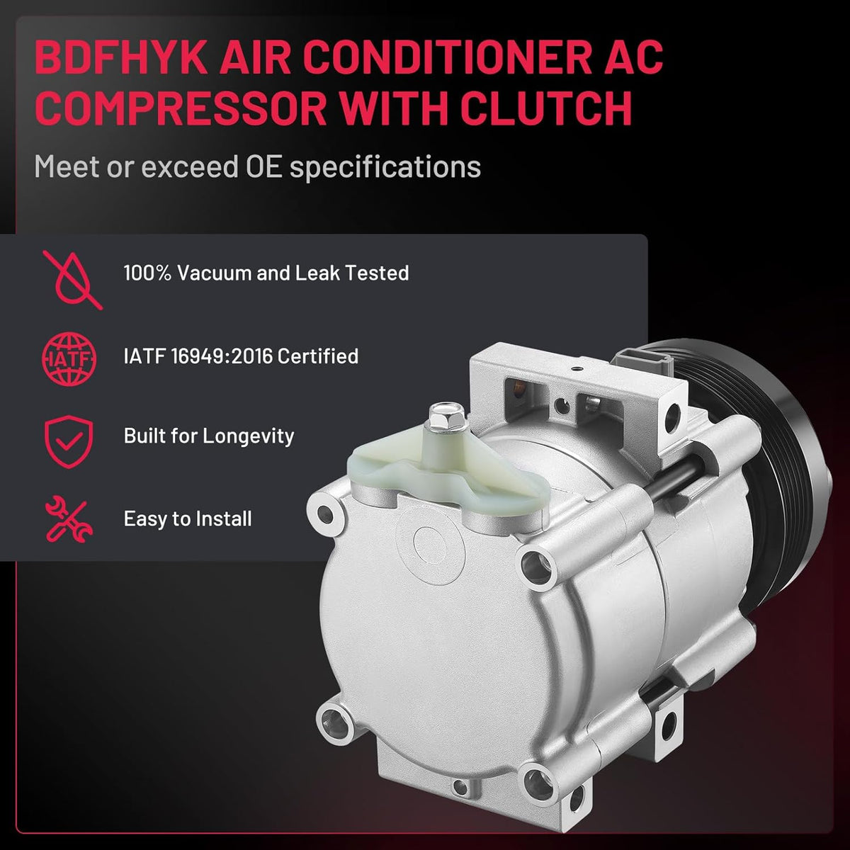 BDFHYK Air Conditioning A/C Compressor 57129 compatible with Ford F-150 F-250 F-350 Super Duty, Compatible with Mercury Cougar, Grand Marquis