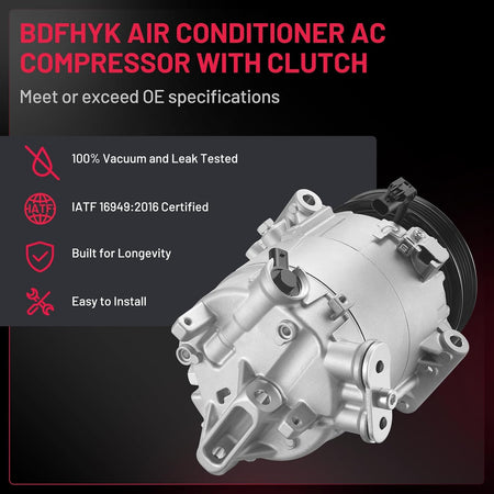 Superior Quality - The A/C Compressors for car are built in a IATF 16949:2016 Certified facility, meet or exceed OE specifications. Mechanically tested prior to leaving the factory ensures optimal performance and enhanced durability. Great life cycles.