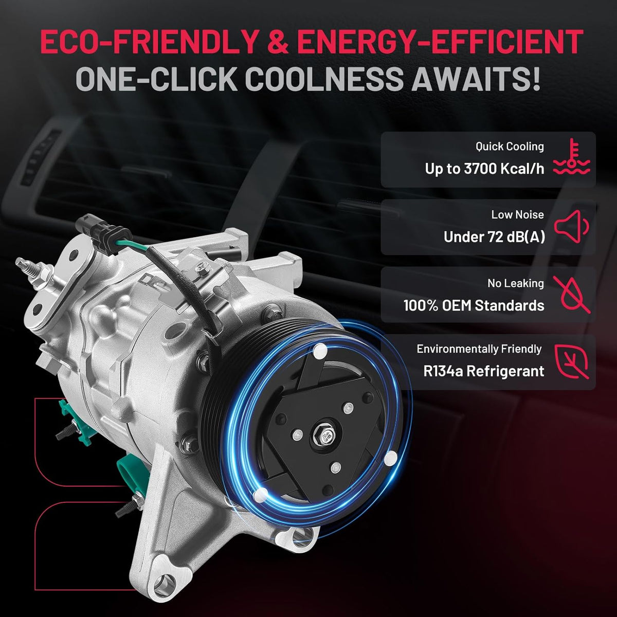 Durable & Low Noise - AC compressor is constructed of heavy-duty materials for superior durability and wear resistance. Designed for low-noise operation, it provides smooth cooling performance.