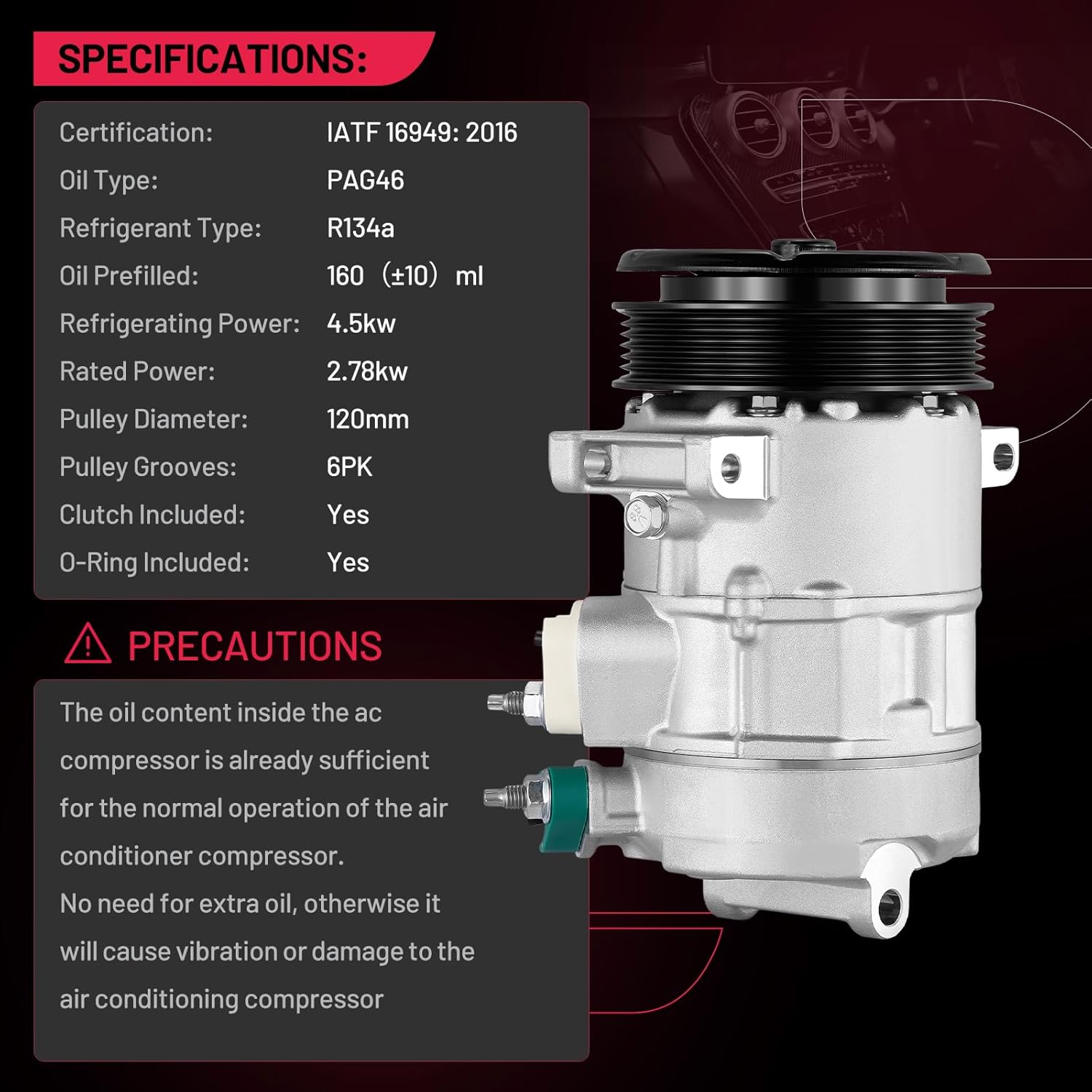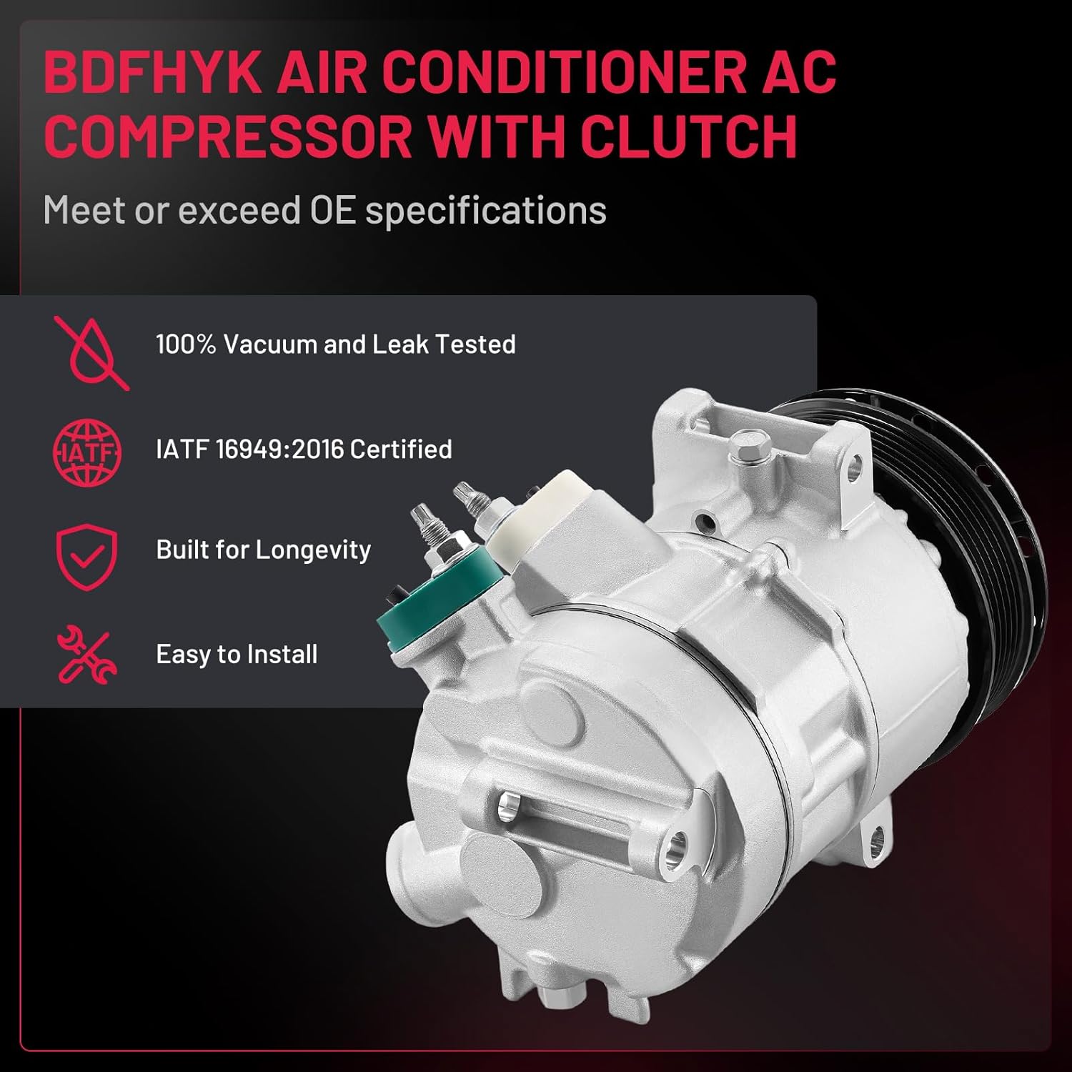 Superior Quality - The A/C Compressors for car are built in a IATF 16949:2016 Certified facility, meet or exceed OE specifications. Mechanically tested prior to leaving the factory ensures optimal performance and enhanced durability. Great life cycles.