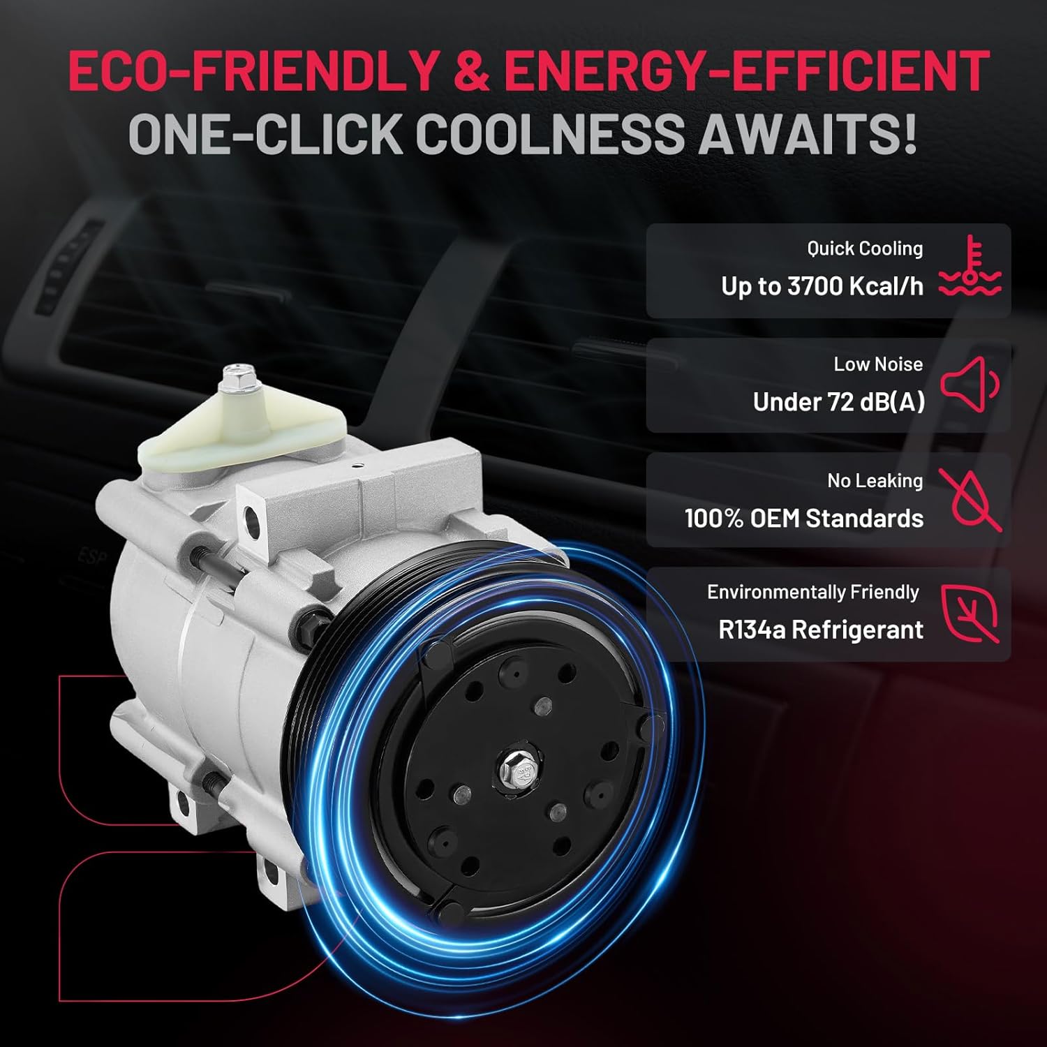 Durable & Low Noise - AC compressor is constructed of heavy-duty materials for superior durability and wear resistance. Designed for low-noise operation, it provides smooth cooling performance.