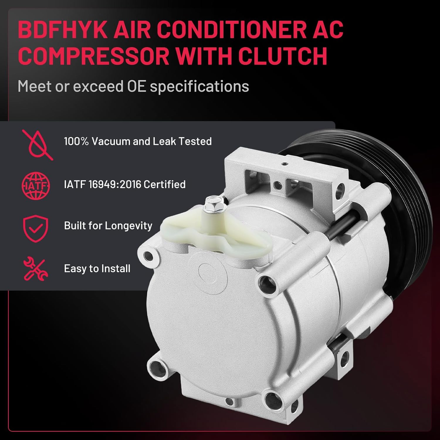 BDFHYK Air Conditioning A/C Compressor with Clutch Compatible with Ford F-150 1997-2006, F-150 Heritage 2004 4.2L, Replacement F65Z19V703J F6LZ19703AA 4L3Z19703AA
