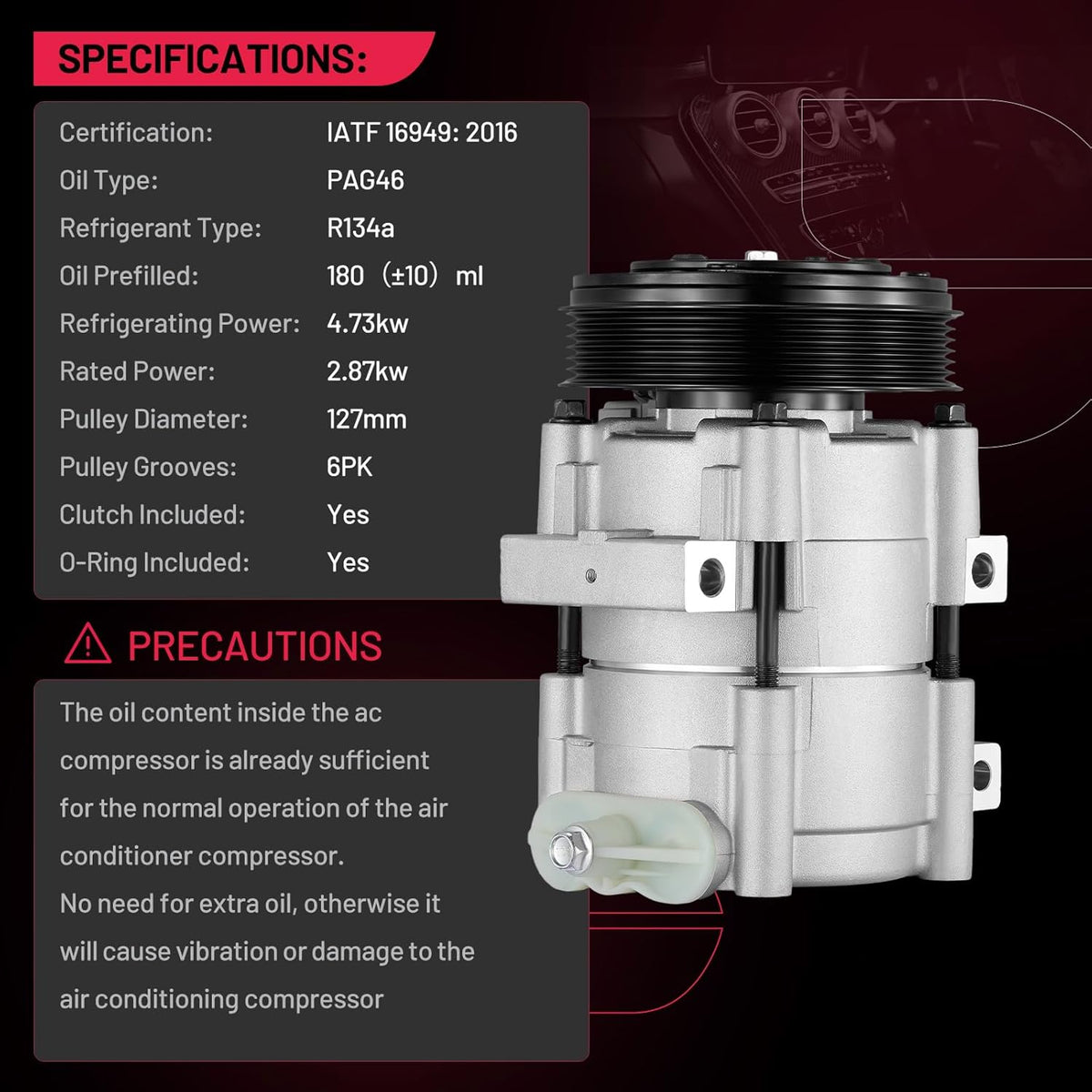 Vehicle Fitment - The AC compressor compatible with Ford F-150 1997-2006 4.2L, compatible with Ford F-150 Heritage 2004 4.2L
