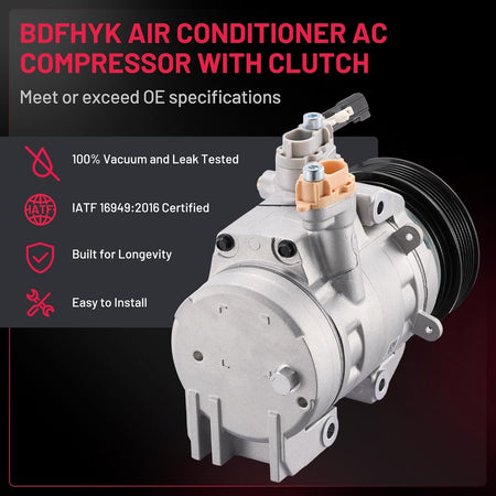 Superior Quality - The A/C Compressors for car are built in a IATF 16949:2016 Certified facility, meet or exceed OE specifications. Mechanically tested prior to leaving the factory ensures optimal performance and enhanced durability. Great life cycles.