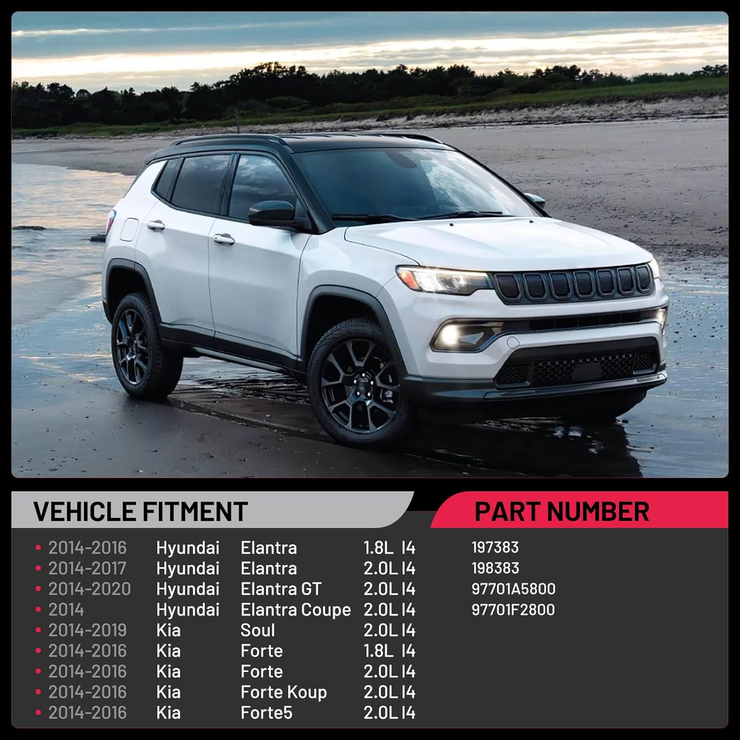 Vehicle Fitment - The AC compressor compatible with Hyundai Elantra 2014-2016 1.8L, Elantra 2014-2017 2.0L, Elantra GT 2014-2020 2.0L, Elantra Coupe 2014 2.0L; compatible with Kia Soul 2014-2019 2.0L, Forte 2014-2016 1.8L, Kia Forte 2014-2016 2.0L, Forte Koup 2014-2016 2.0L, Forte5 2014-2016 2.0L.