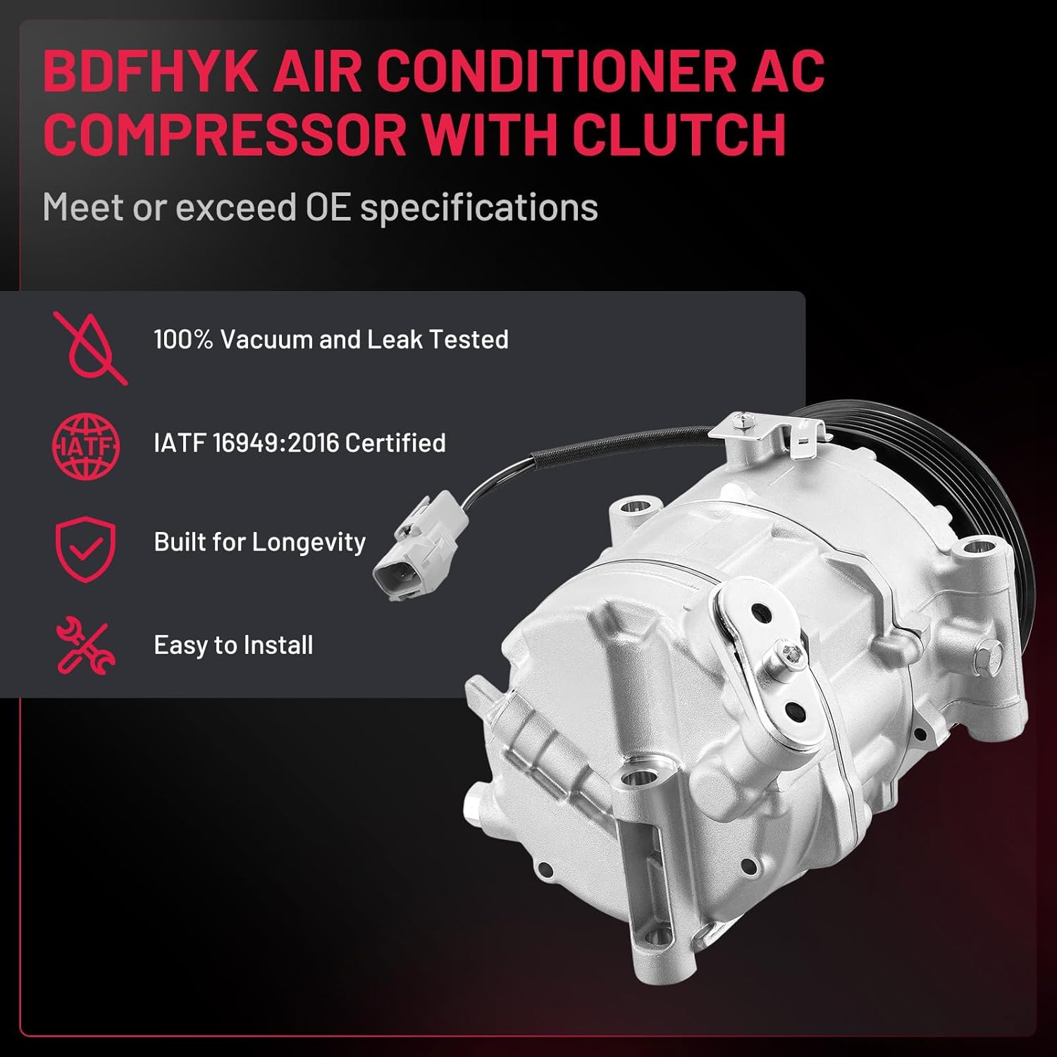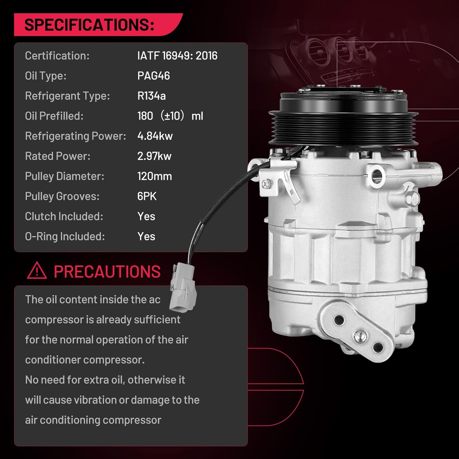 Superior Quality - The A/C Compressors for car are built in a IATF 16949:2016 Certified facility, meet or exceed OE specifications. Mechanically tested prior to leaving the factory ensures optimal performance and enhanced durability. Great life cycles.