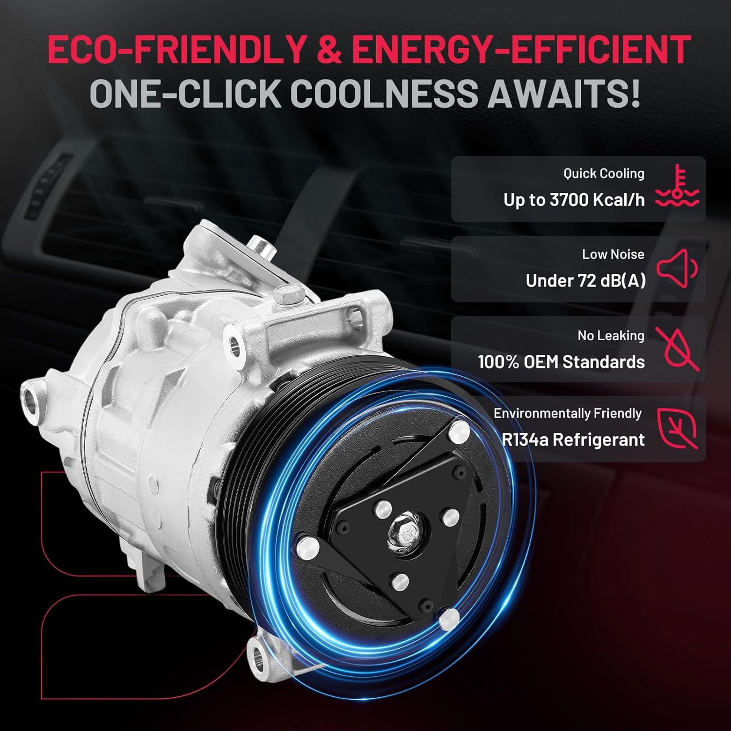 Durable & Low Noise - AC compressor is constructed of heavy-duty materials for superior durability and wear resistance. Designed for low-noise operation, it provides smooth cooling performance.