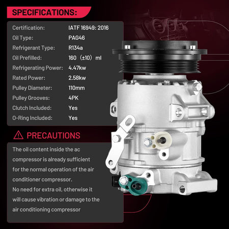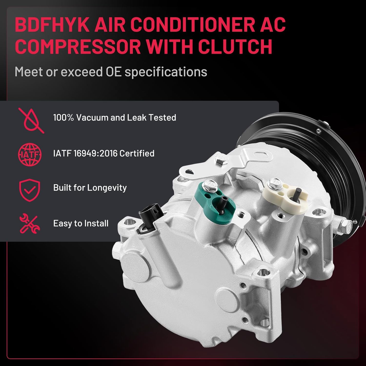 Superior Quality - The A/C Compressors for car are built in a IATF 16949:2016 Certified facility, meet or exceed OE specifications. Mechanically tested prior to leaving the factory ensures optimal performance and enhanced durability. Great life cycles.