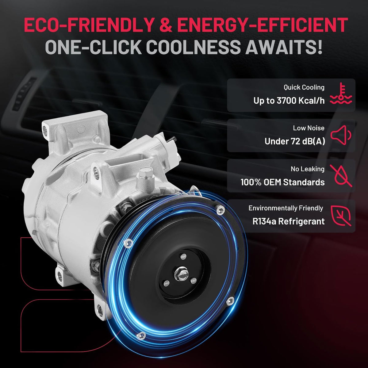 Durable & Low Noise - AC compressor is constructed of heavy-duty materials for superior durability and wear resistance. Designed for low-noise operation, it provides smooth cooling performance.