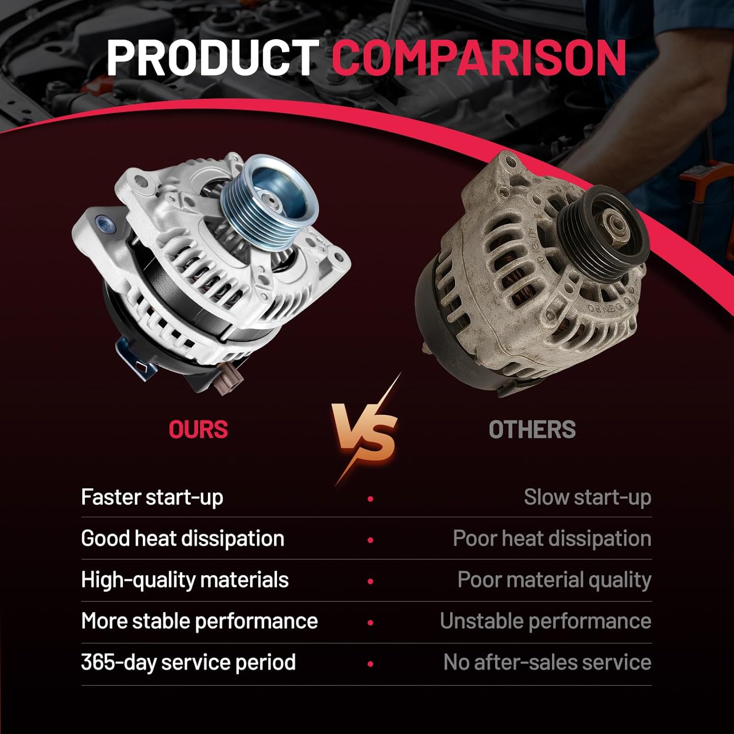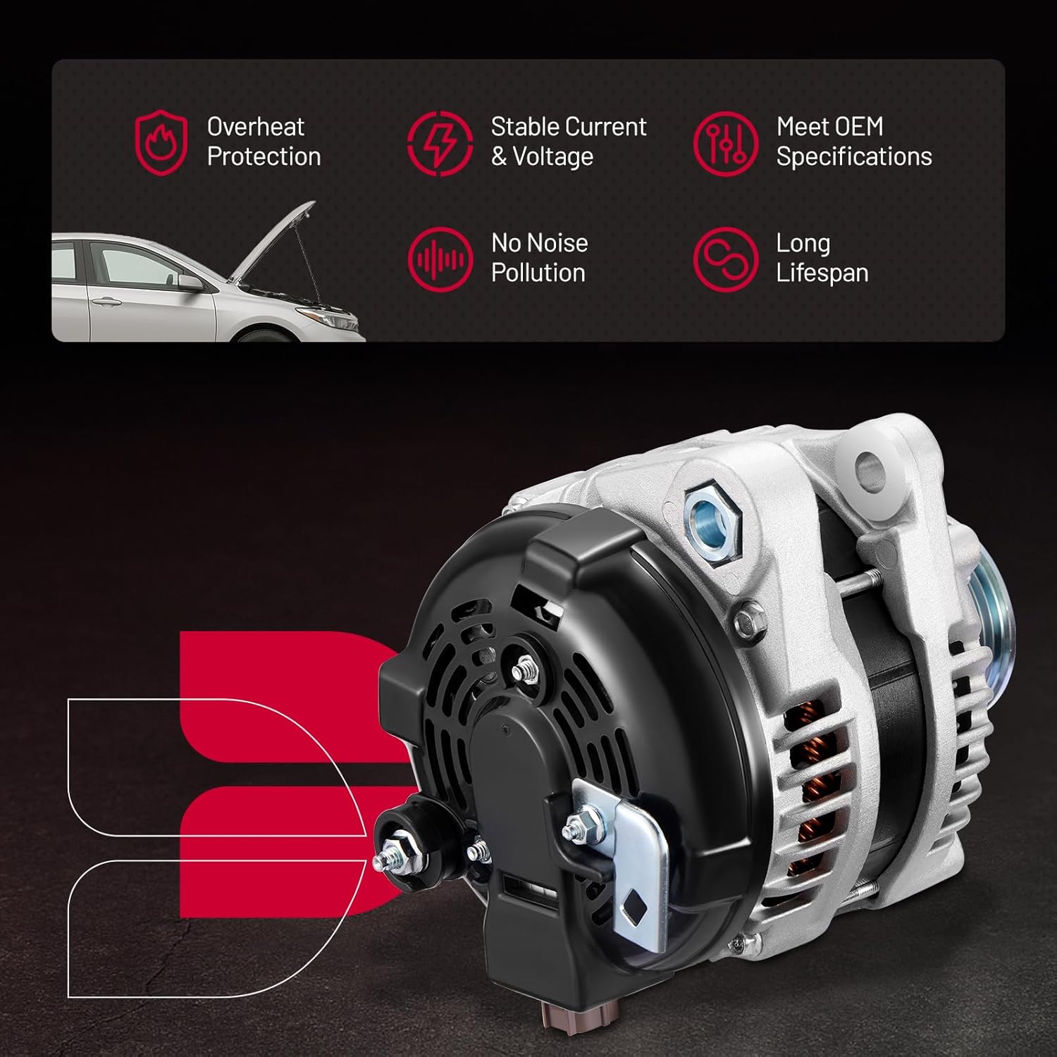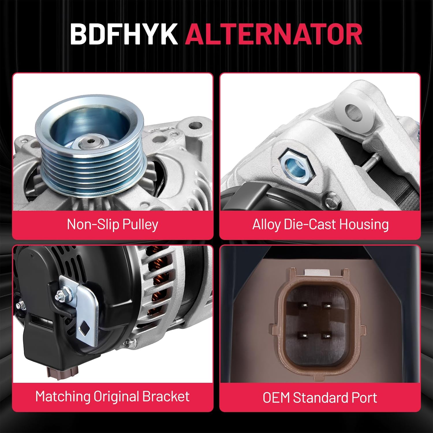 【Stable Output】The BDFHYK alternator delivers consistent power to all vehicle electronics while efficiently charging the battery. Engineered with premium components, it withstands heat, vibration, and harsh road conditions for extended service life