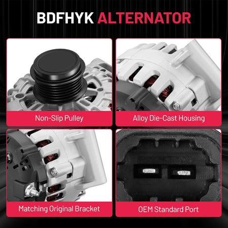 【Stable Output】The BDFHYK alternator delivers consistent power to all vehicle electronics while efficiently charging the battery. Engineered with premium components, it withstands heat, vibration, and harsh road conditions for extended service life