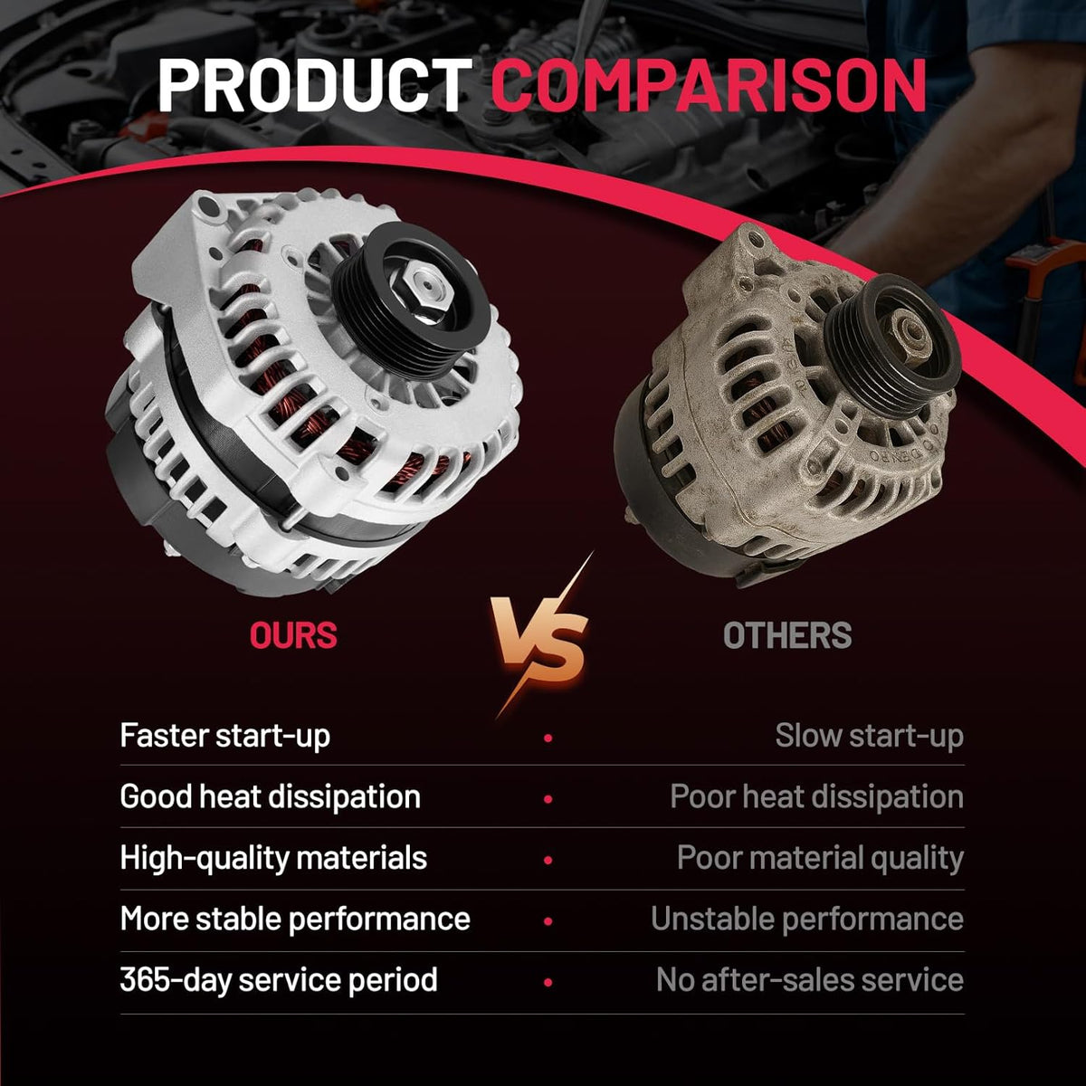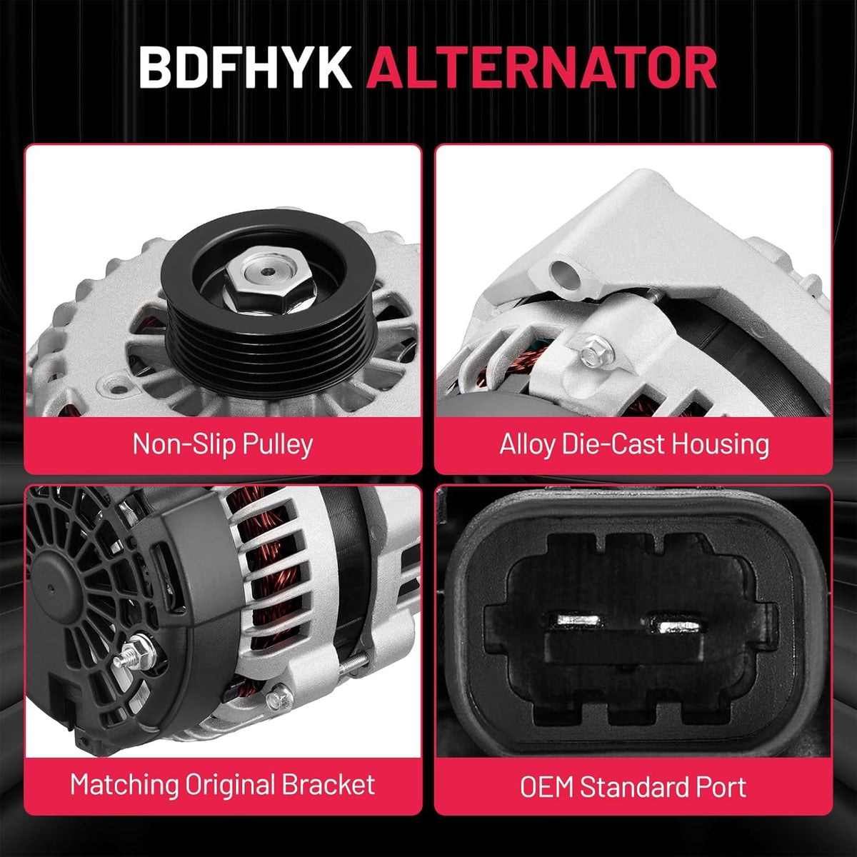 【Stable Output】The BDFHYK alternator delivers consistent power to all vehicle electronics while efficiently charging the battery. Engineered with premium components, it withstands heat, vibration, and harsh road conditions for extended service life